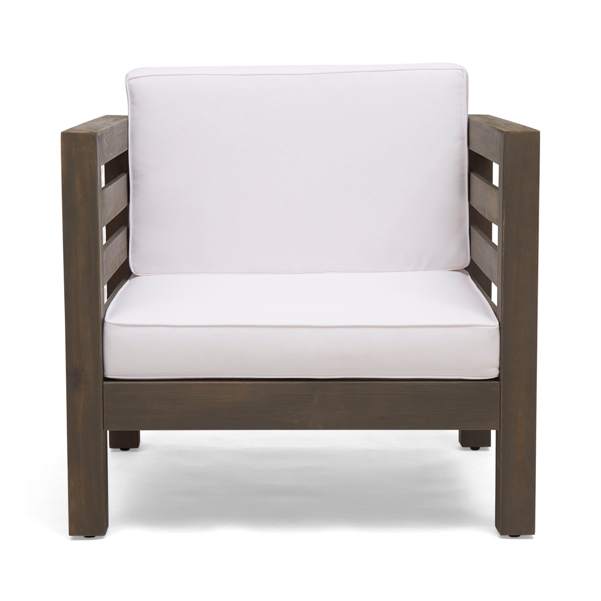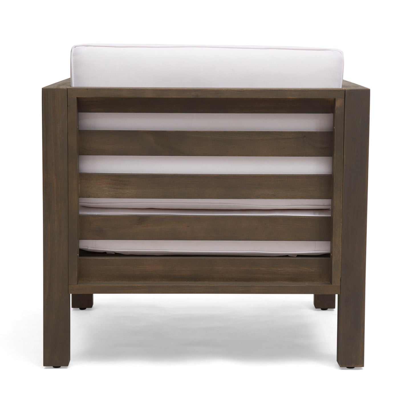 Outdoor Club Chair, Acacia Wood Patio Chair With Fabric Cushion For Backyard, Garden Or Porch - Gray / White