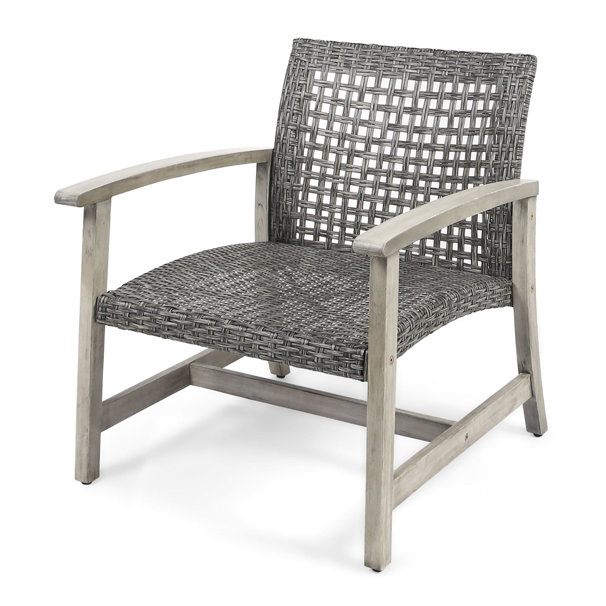 Outdoor Club Chair With Rattan Cover And Acacia Wood Frame - Gray