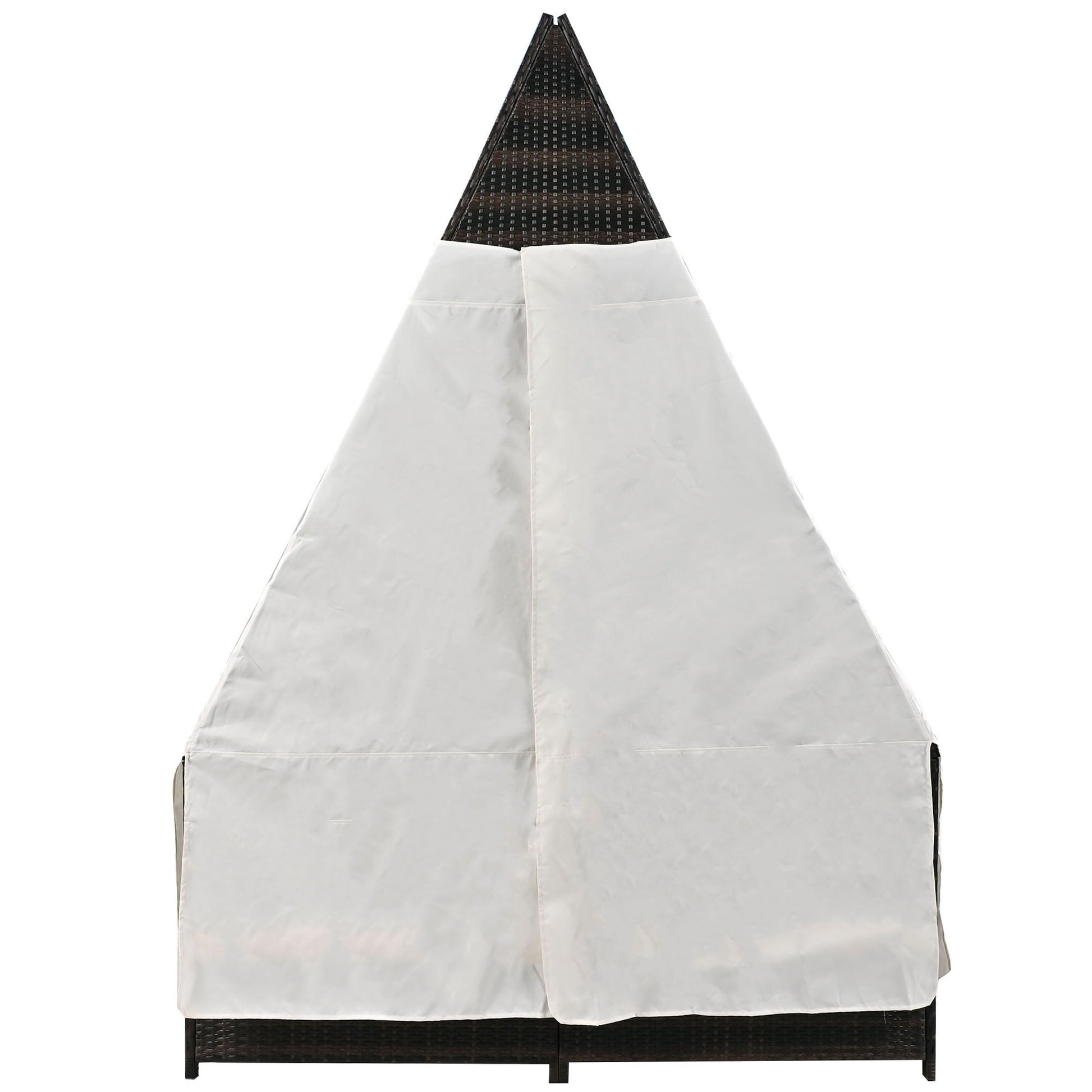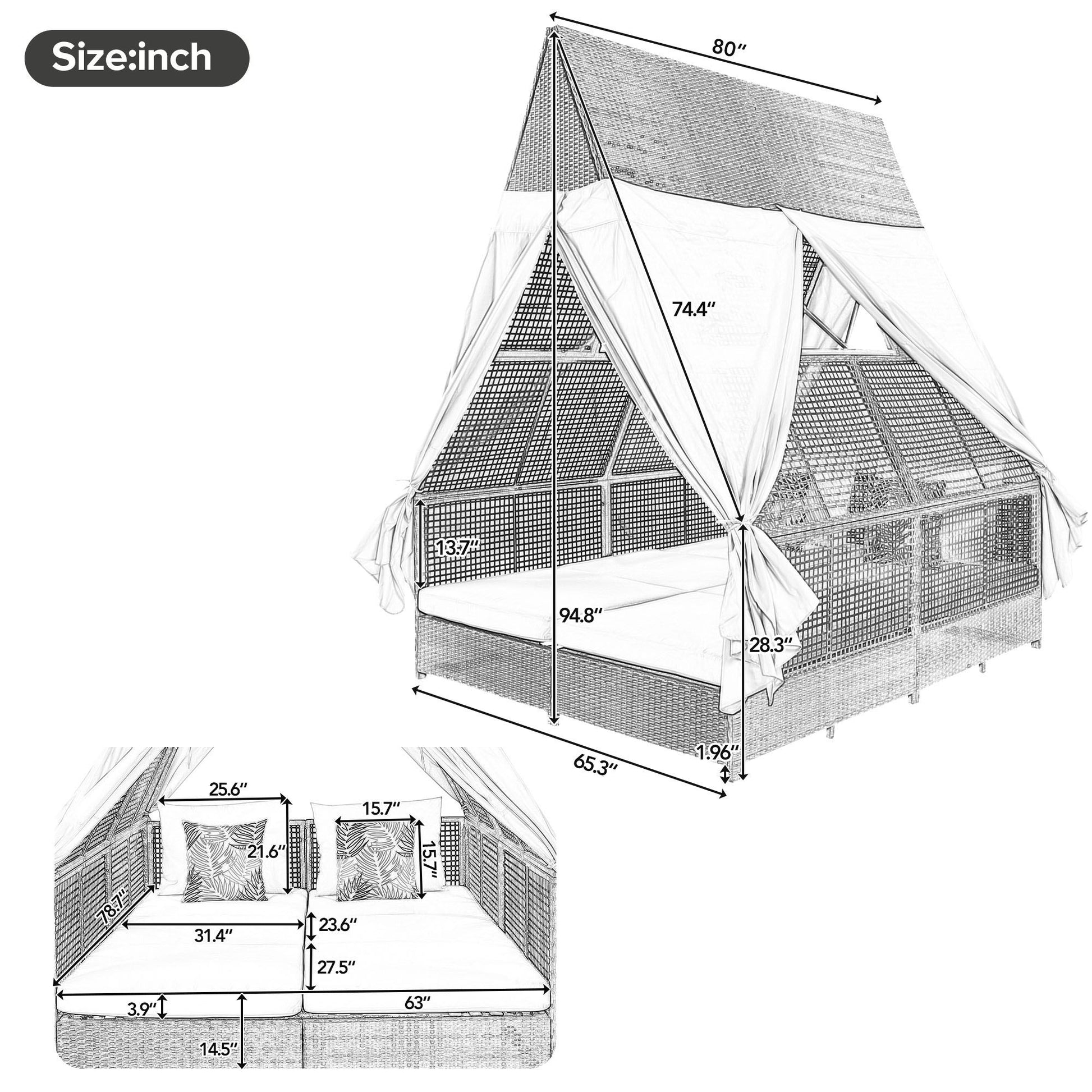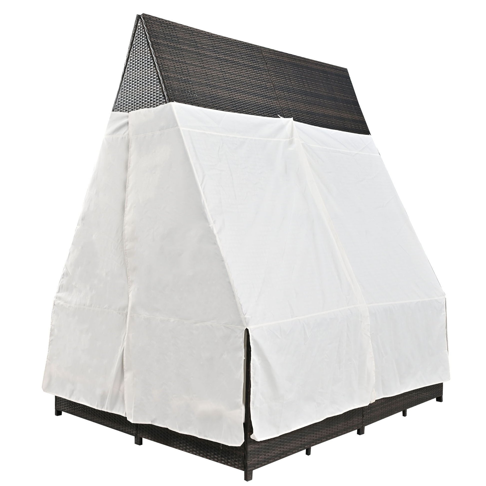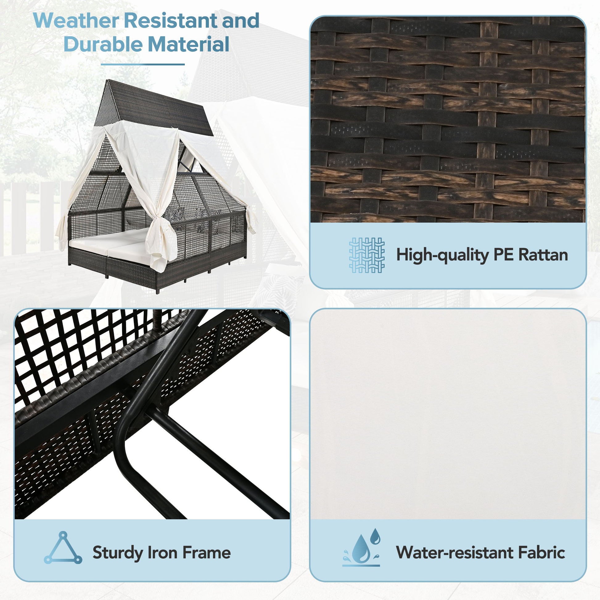 Outdoor Daybed Patio Lounge Bed With Adjustable Backrest Double Sun Lounger With Curtains, 4 Pillows For Garden Patio Poolside Balcony Beach - Cream