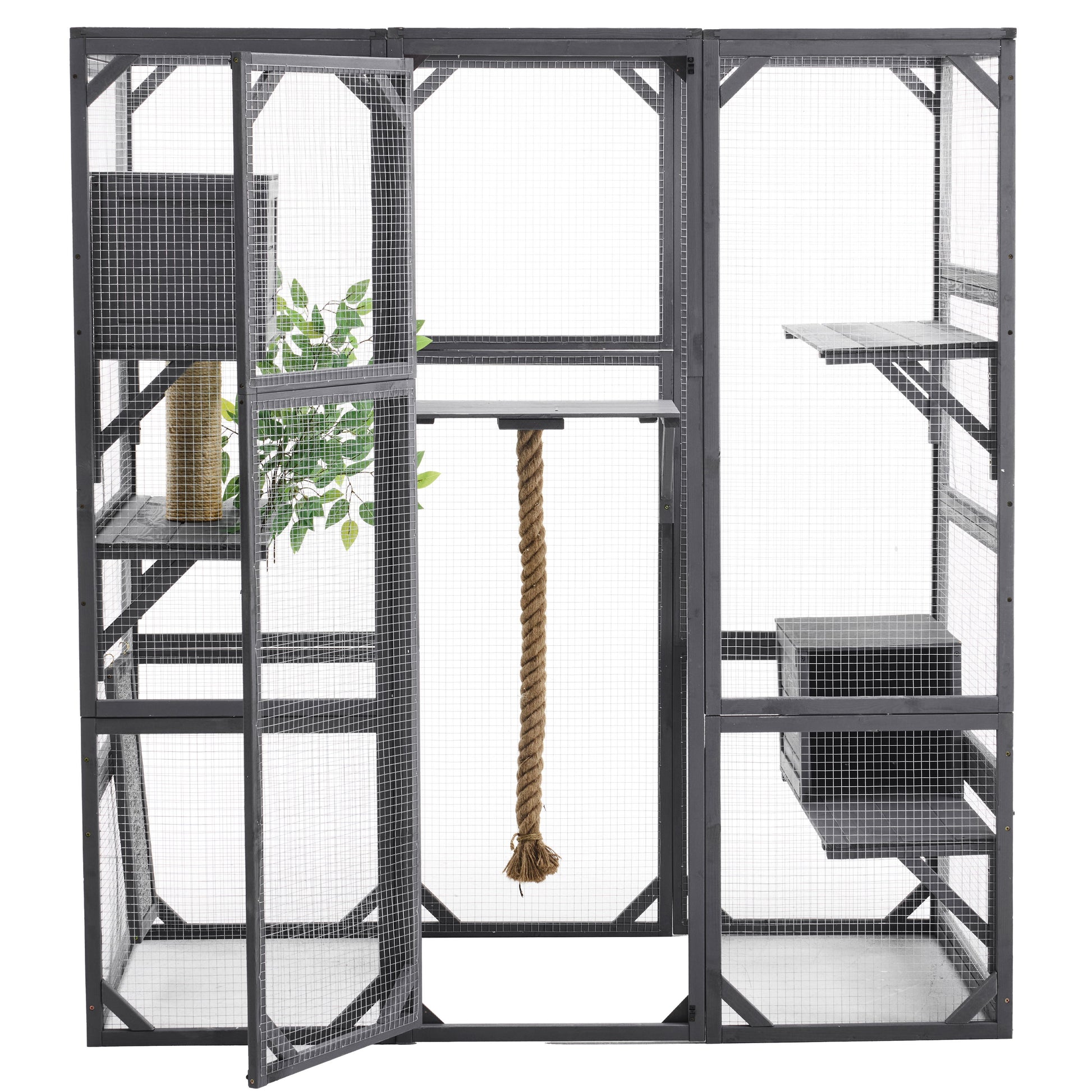 Outdoor Diy Cat House Catio With Double Enter Doors, Platforms, And Condos - Dark Gray