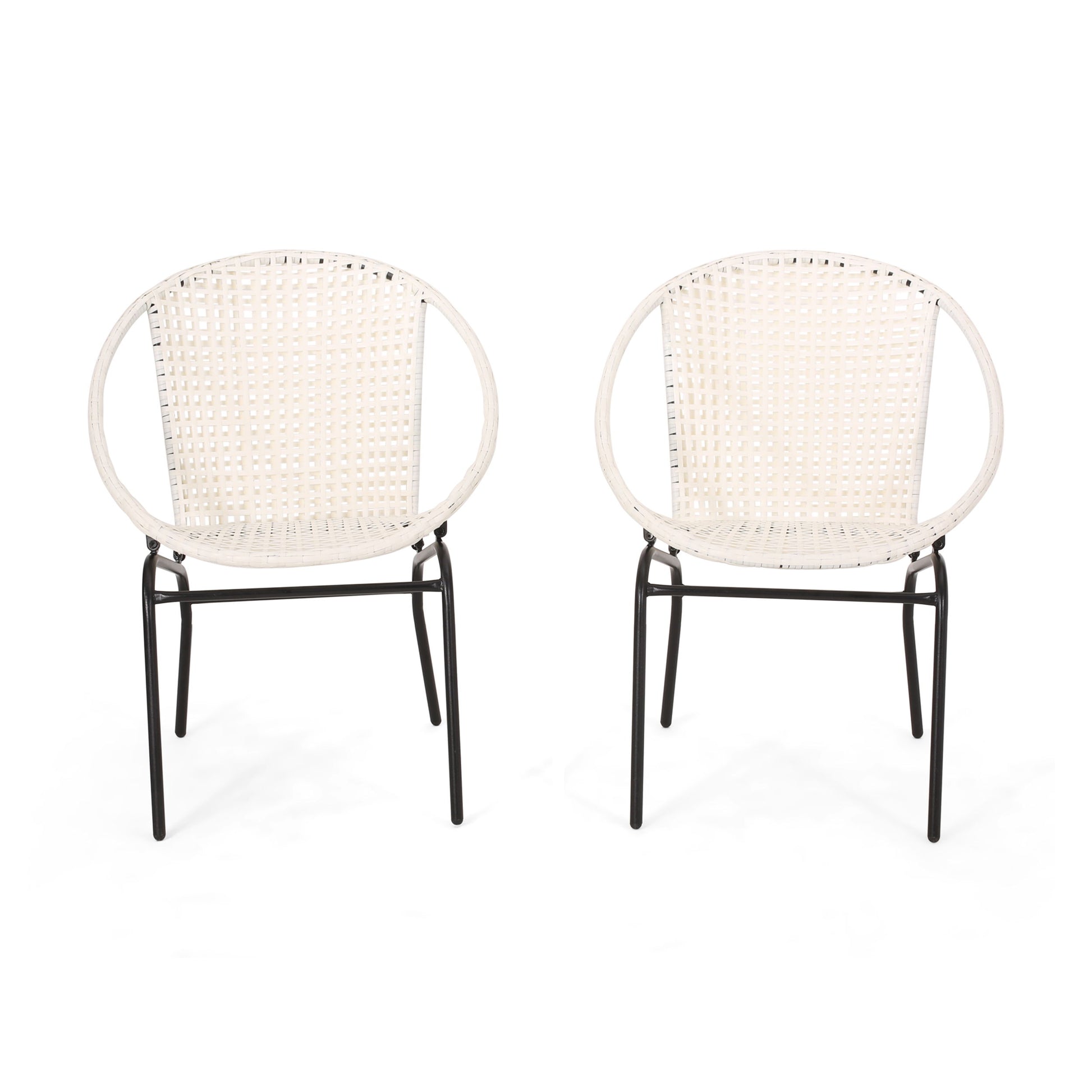 Outdoor Faux Rattan Wicker Chair With Iron Frame (Set of 2) - White / Black