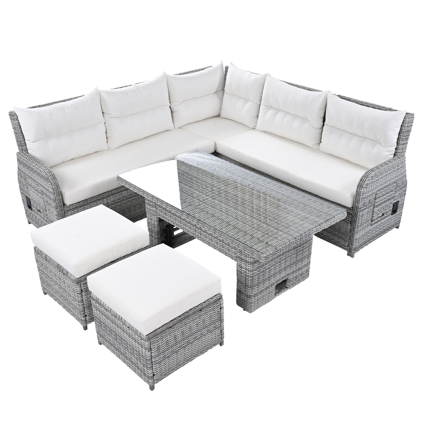 Outdoor Furniture Set Patio Rattan Furniture Set With An Adjustable Table, Recliners With Extendable Side Tables, And 2 Ottomans For Patio, Lawn, Backyard, Pool - Beige