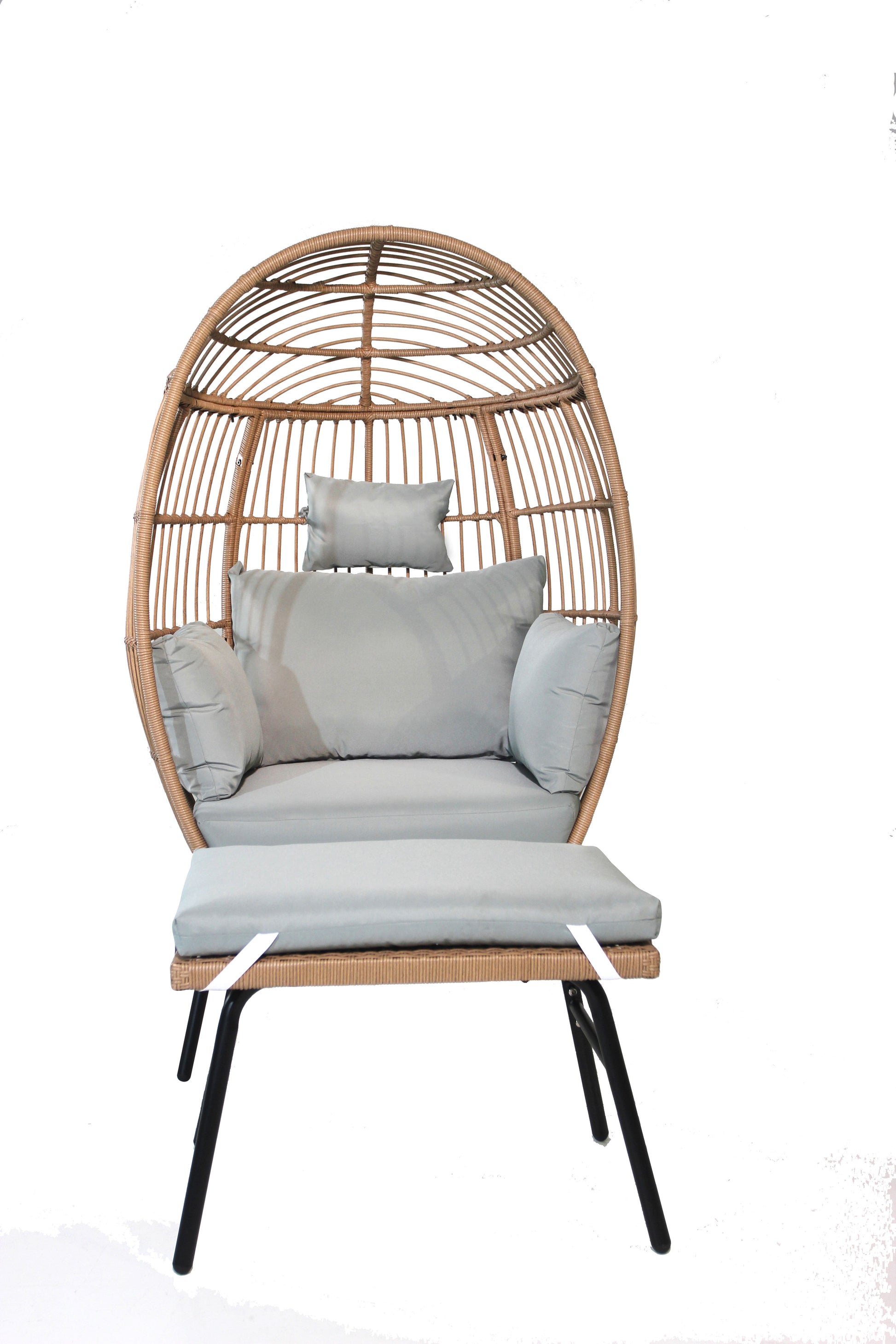 Outdoor Garden Wicker Egg Chair And Footstool Patio Chaise, With Cushions, Outdoor Indoor Basket Chair - Blue / Neutral