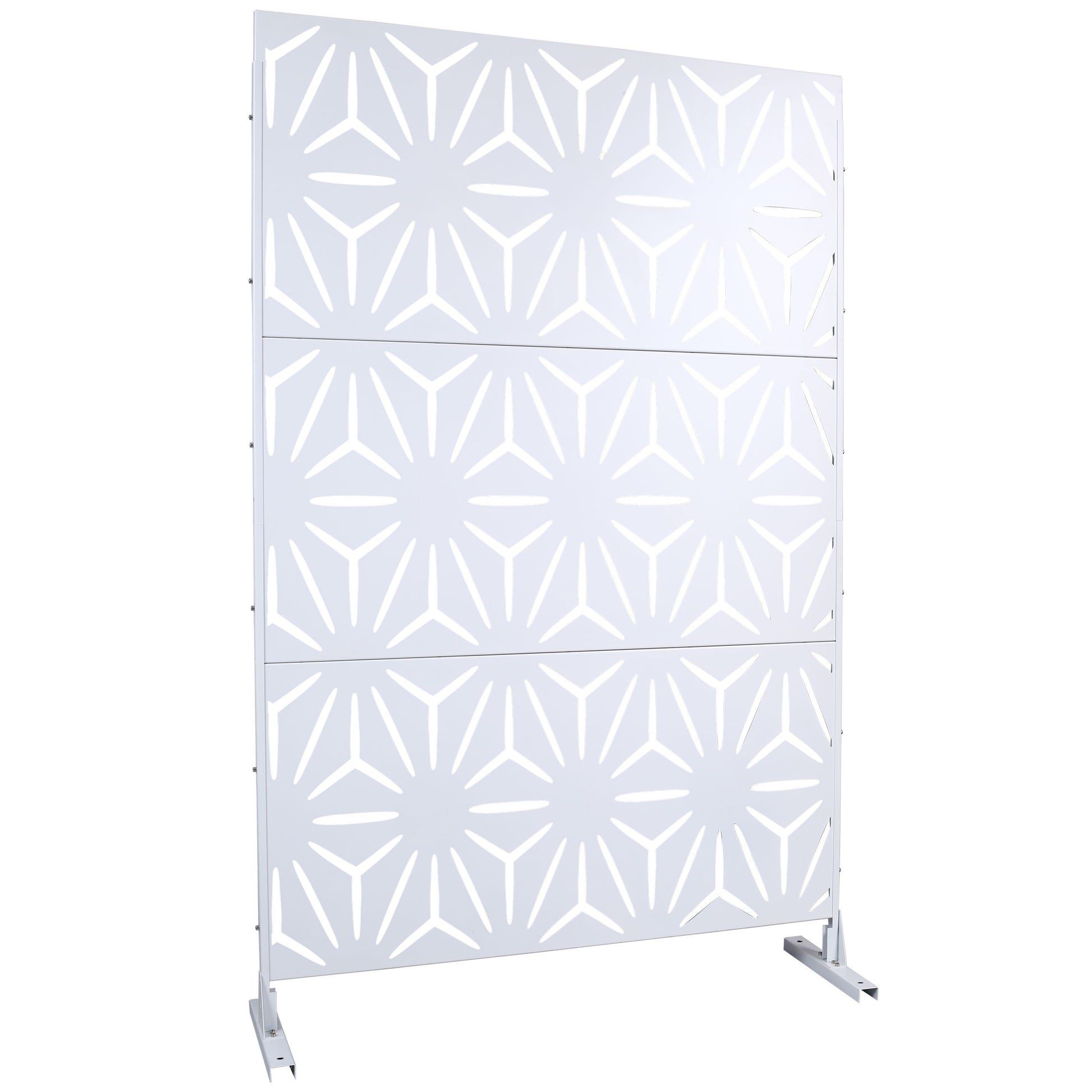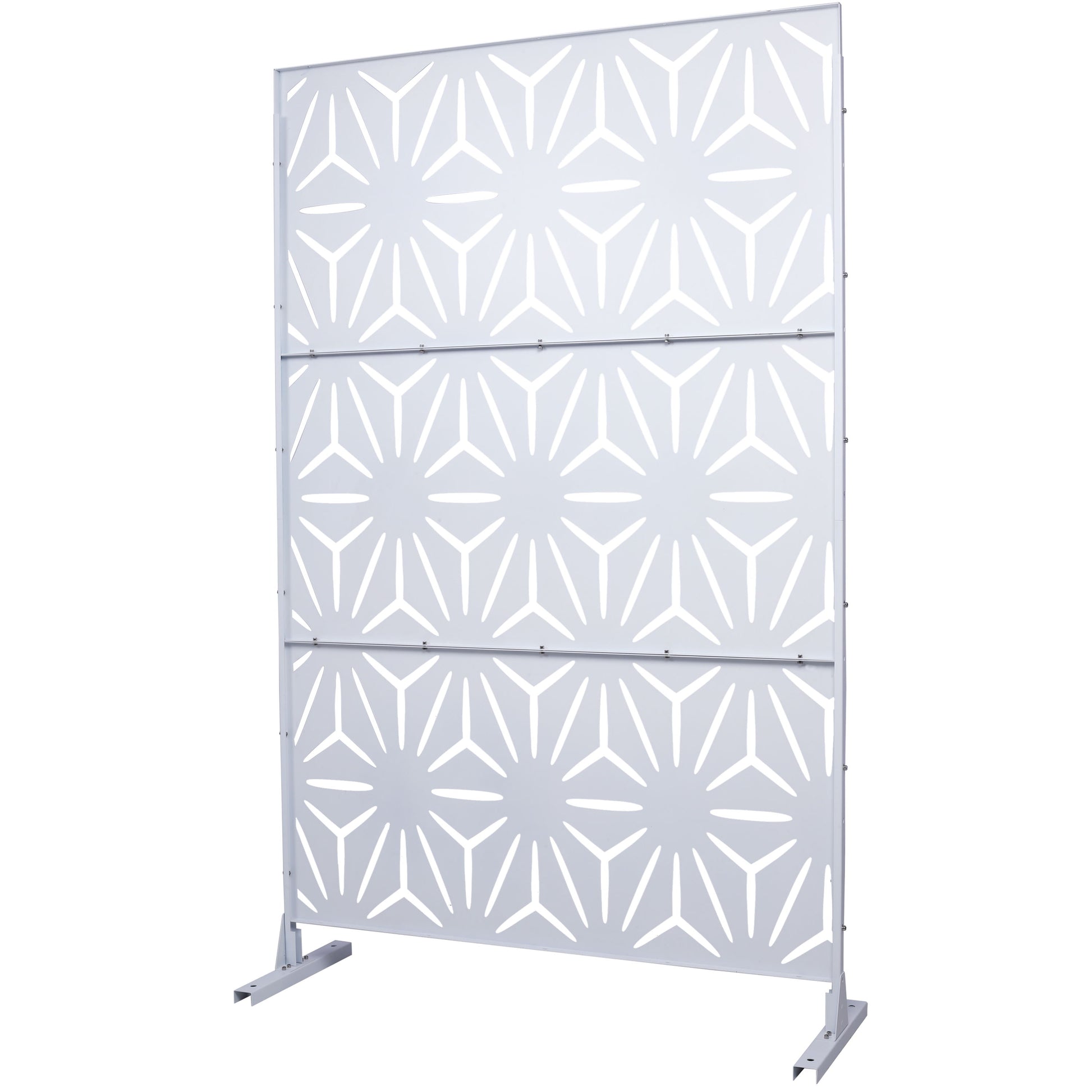 Outdoor & Indoor Metal Privacy Screen, Freestanding Decorative Panels For Deck, Balcony, Patio, Lawn, And Garden - White