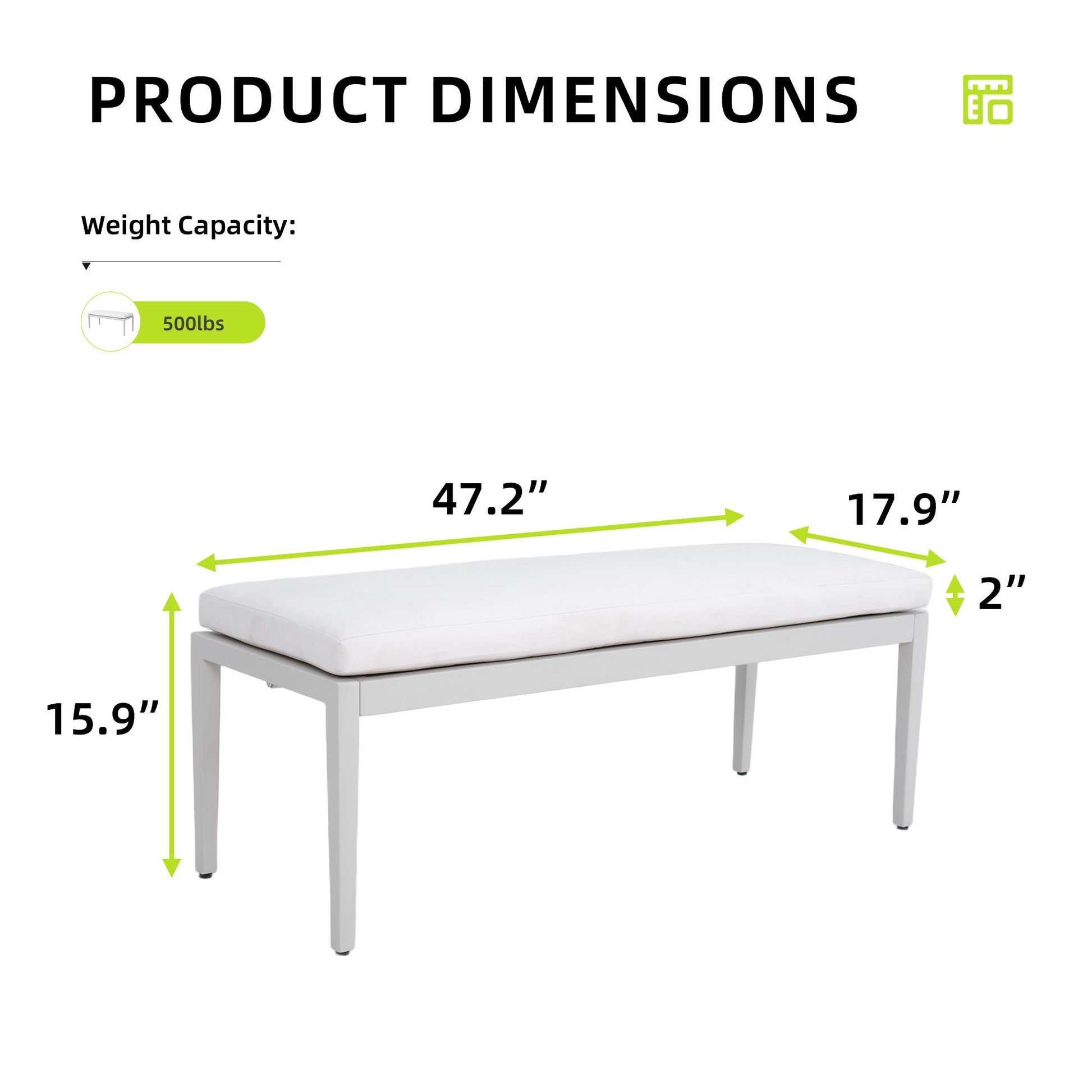 Outdoor Patio Stationary Bench With Sunbrella Fabric Cushion - Grayish