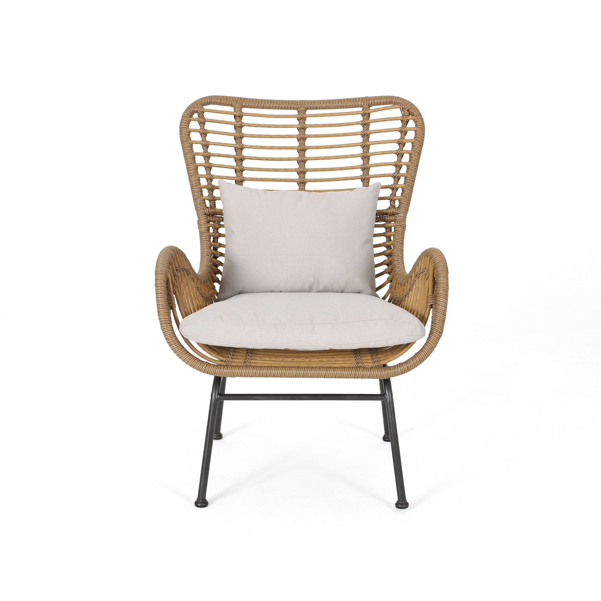 Outdoor Rattan Accent Chair With Metal Legs - Brown