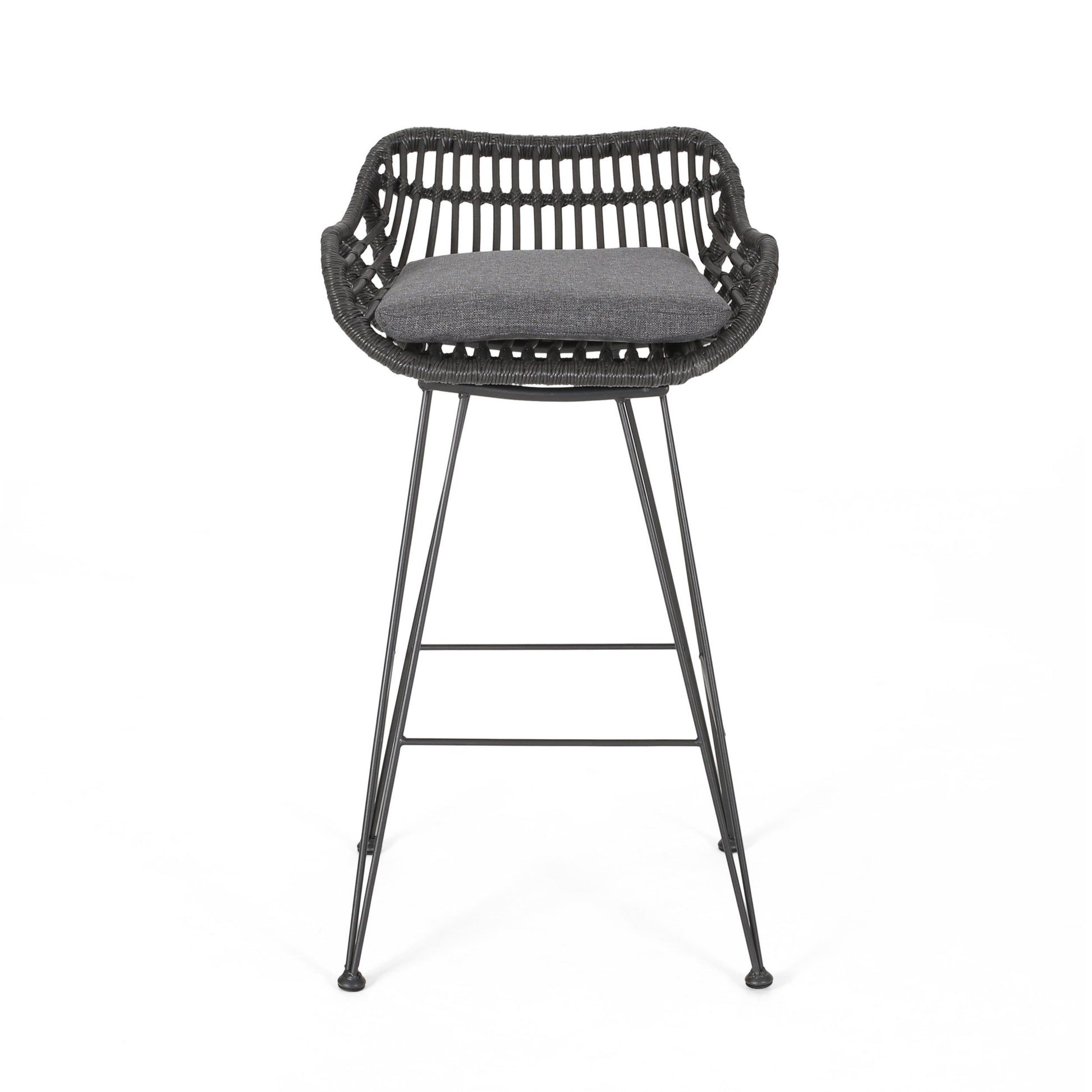 Outdoor Wicker Barstool With Cushions (Set of 2) - Gray