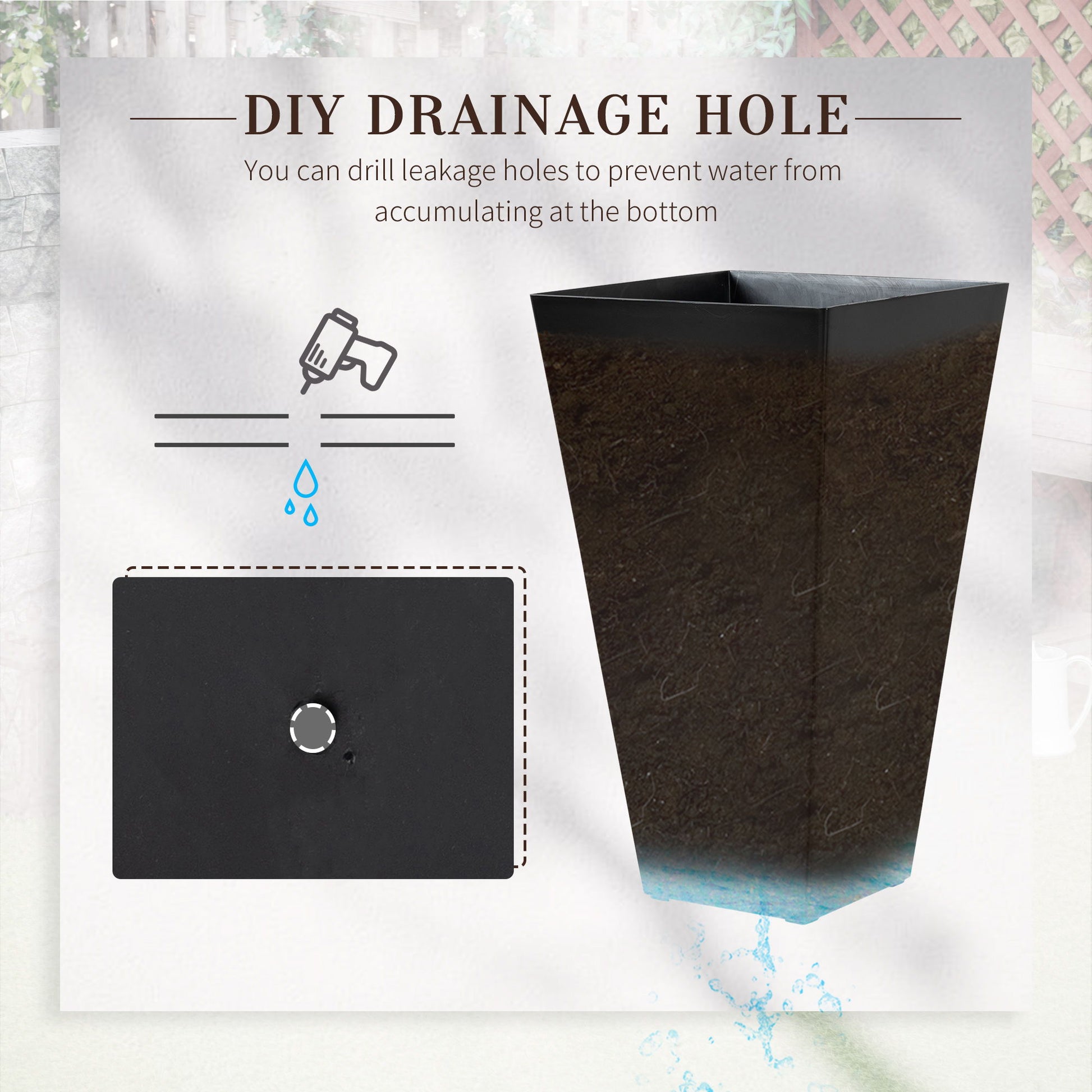 - Efficient Drainage: Features a drain hole with a plug to prevent water accumulation.