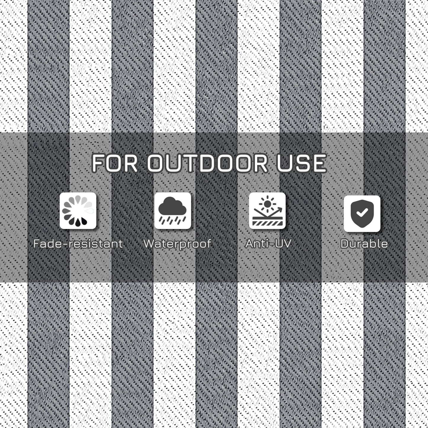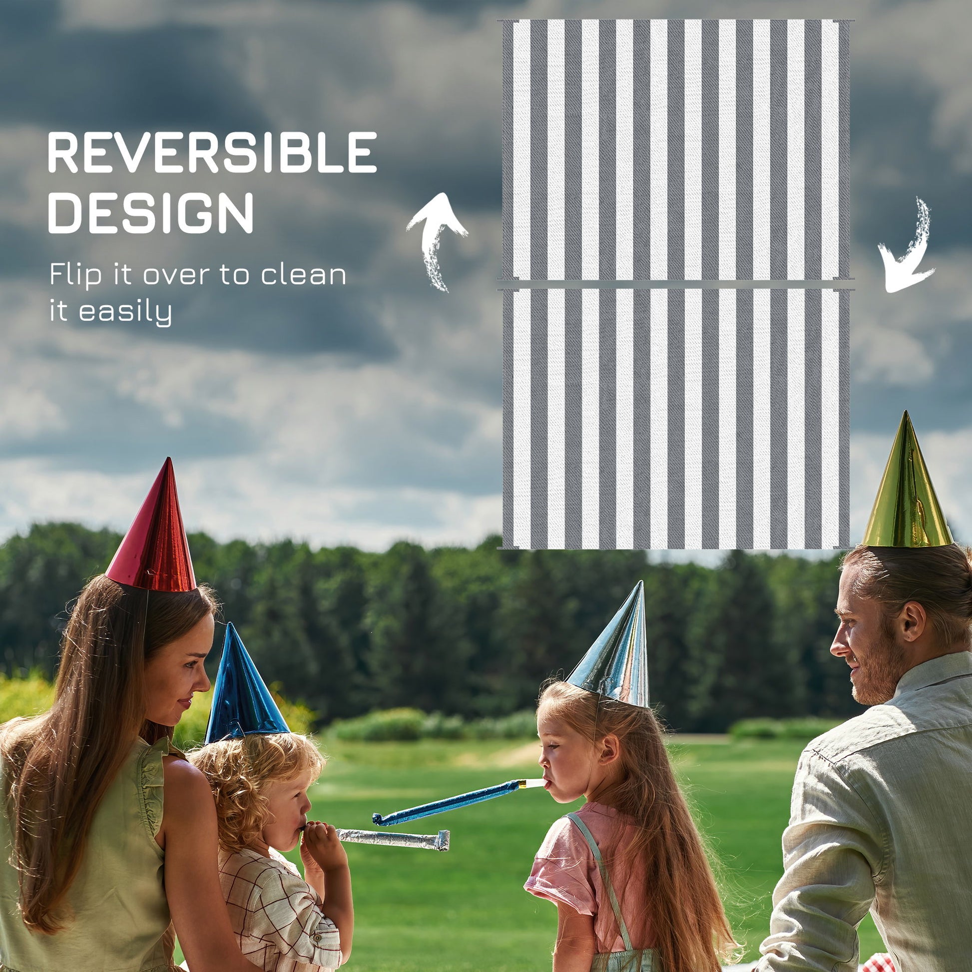Outsunny - Reversible Outdoor Rug, 9' x 12' Waterproof Plastic Straw Floor Mat, Portable Rv Camping Carpet With Carry Bag, Large Floor Mat For Backyard, Deck, Picnic, Beach - Gray & White Striped