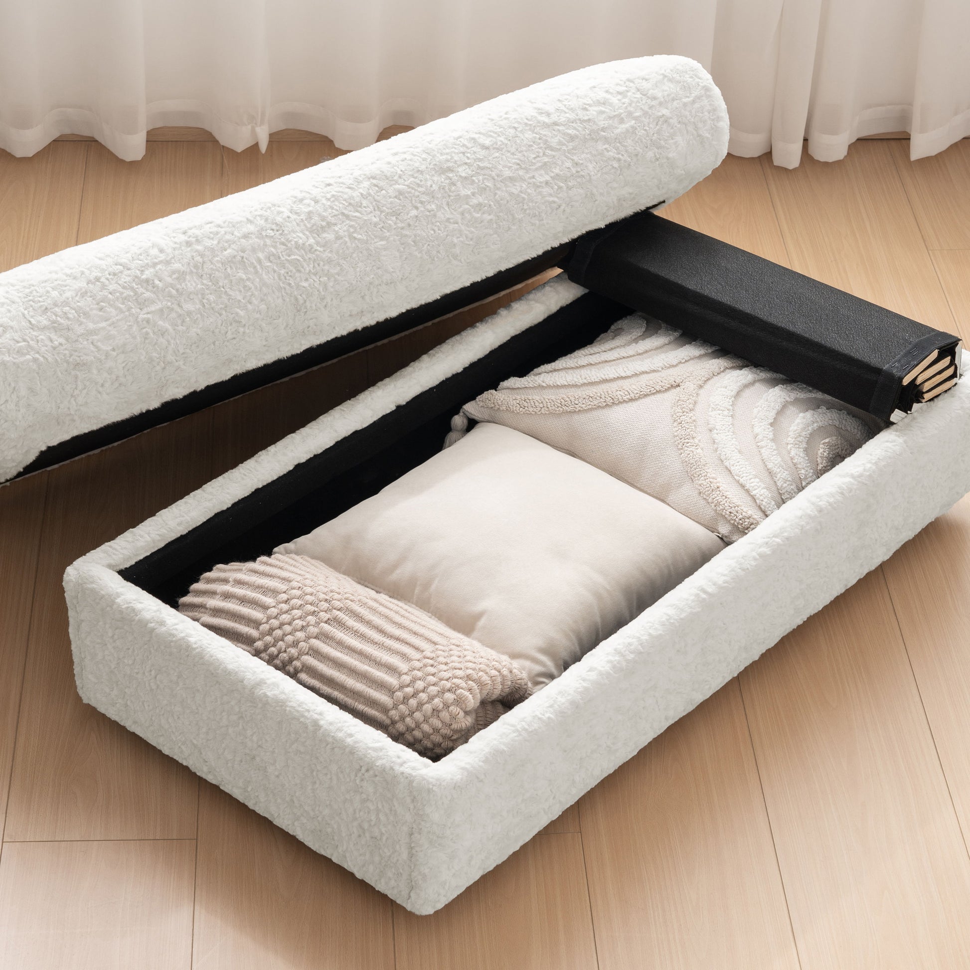 - Free-Moving Ottoman: Serves as both a footrest and storage solution for blankets and pillows.