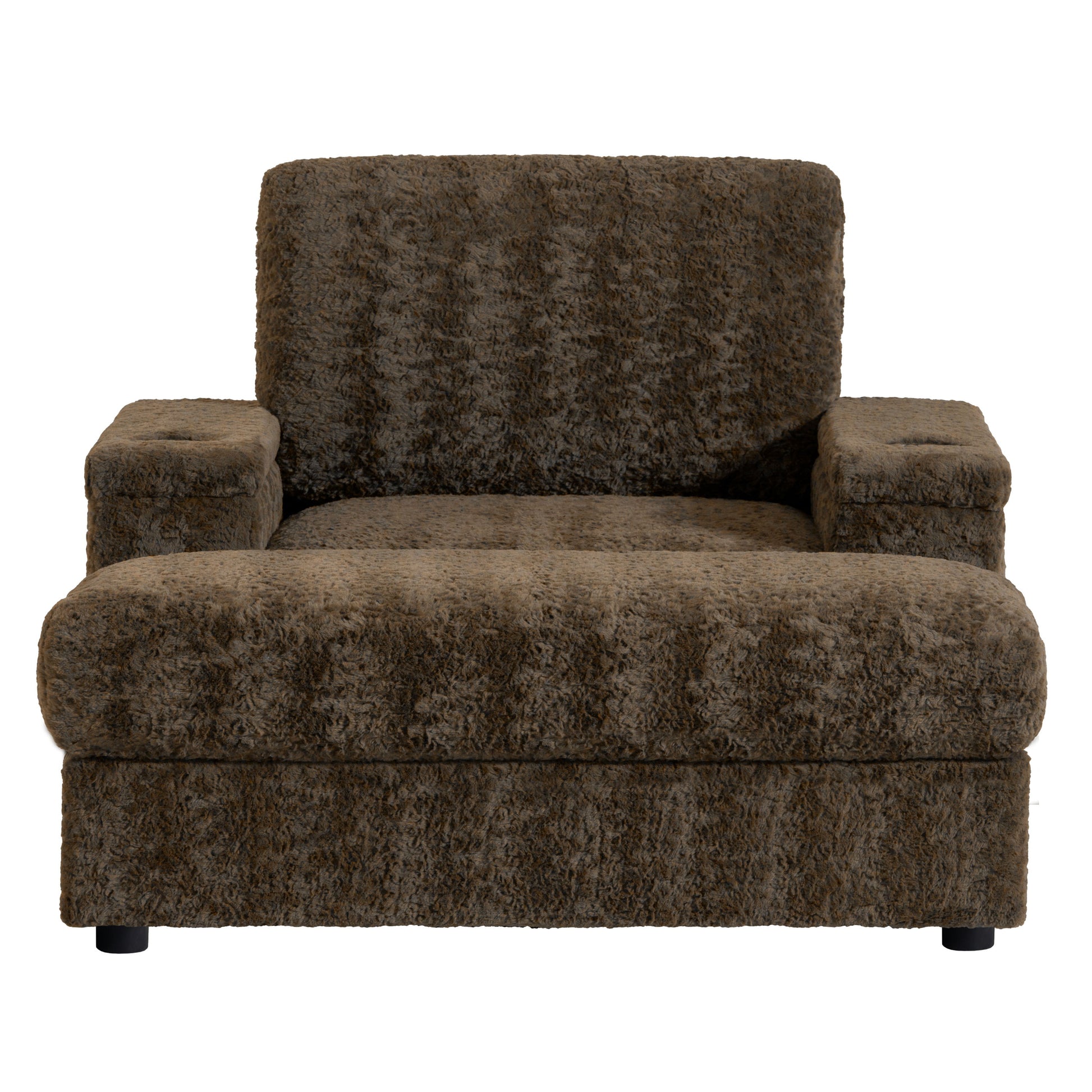 Oversized Chaise Lounge Indoor Rabbit Fur Sofa Bed With Storage Ottoman And Armrests Cup Holders With Deep Seat - Brown