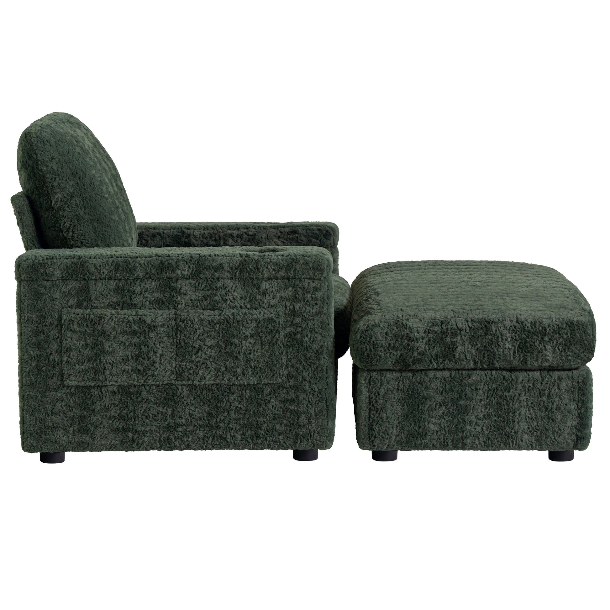 Oversized Chaise Lounge Indoor Rabbit Fur Sofa Bed With Storage Ottoman And Armrests Cup Holders With Deep Seat - Green