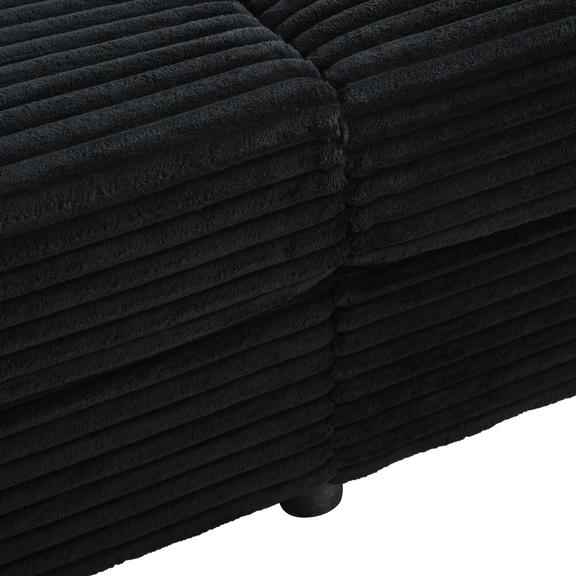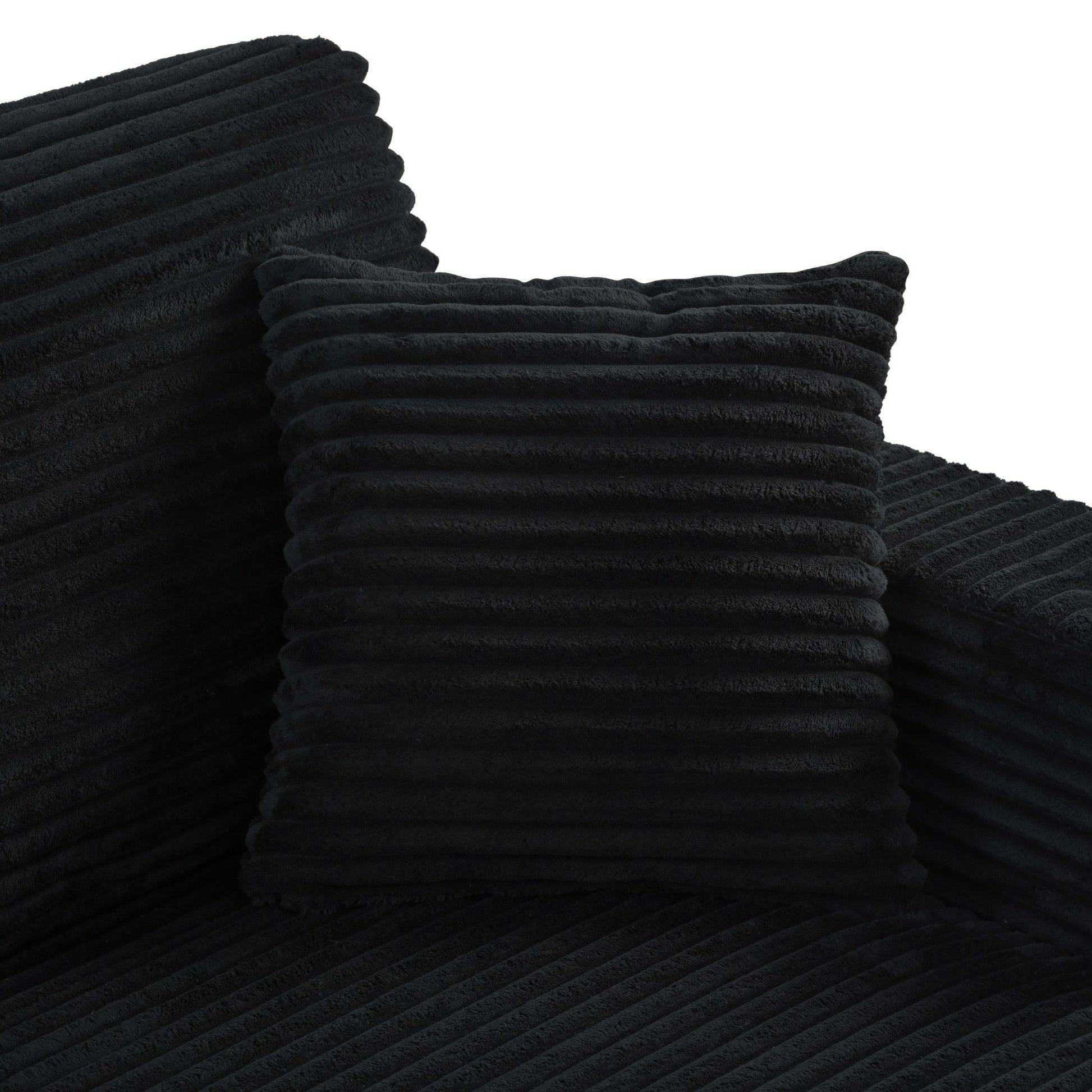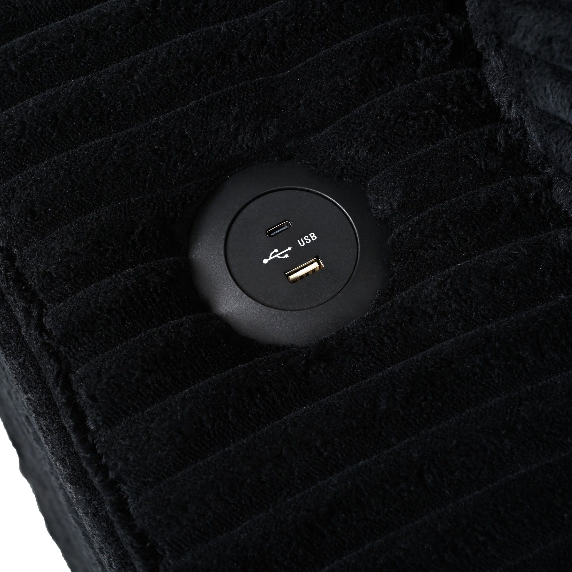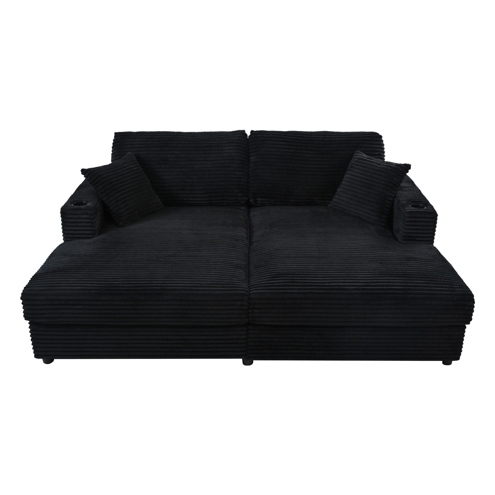Oversized Loveseat Chaise Lounge Sectional Sofa Bed Corduroy Sleeper Sofa With 2 USB Ports, 2 Cup Holders And 2 Throw Pillows For Living Room And Bedroom - Black