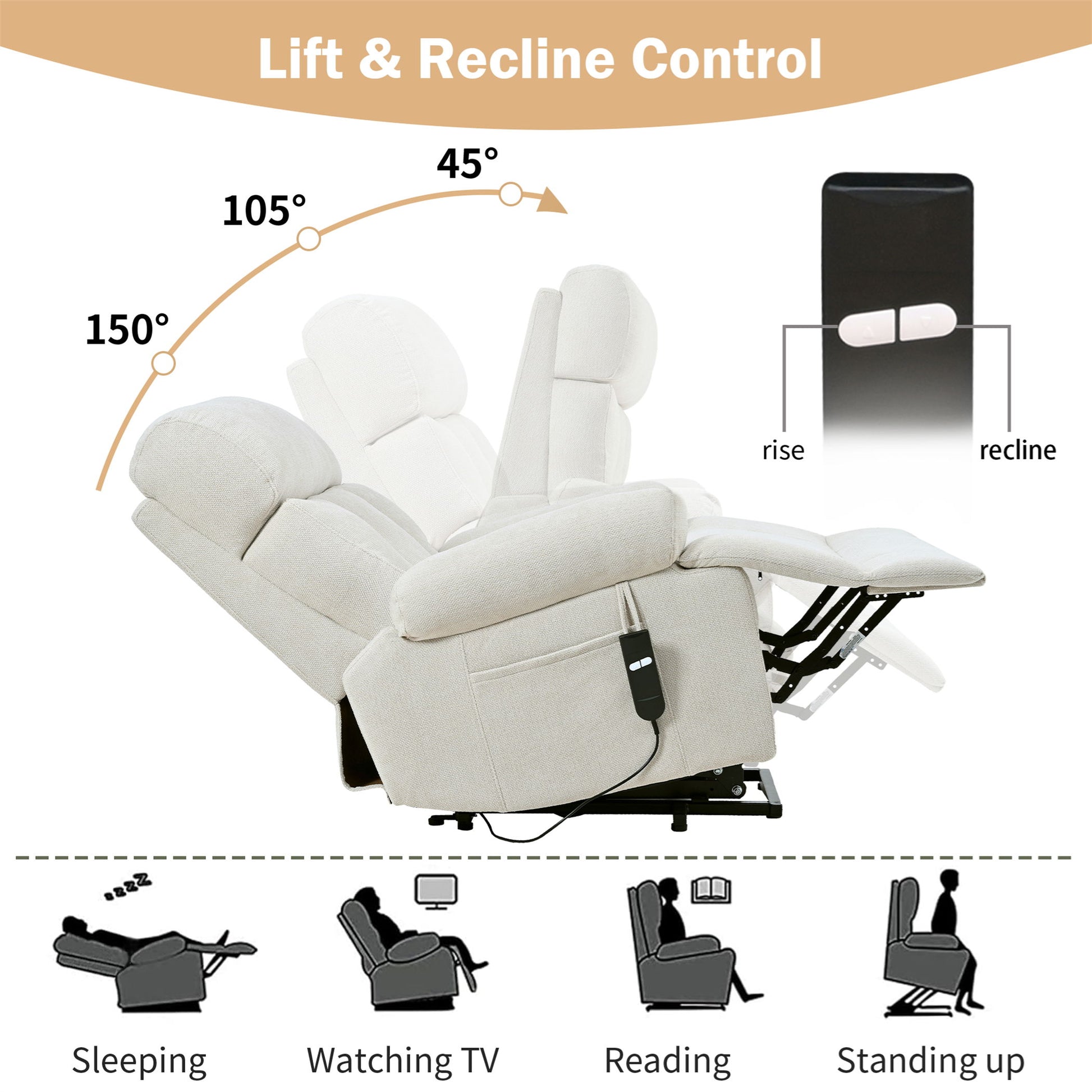 - Convenient Side Pocket: Spacious side pocket keeps magazines, remotes, and essentials within easy reach; remote control simplifies lifting and reclining functions.