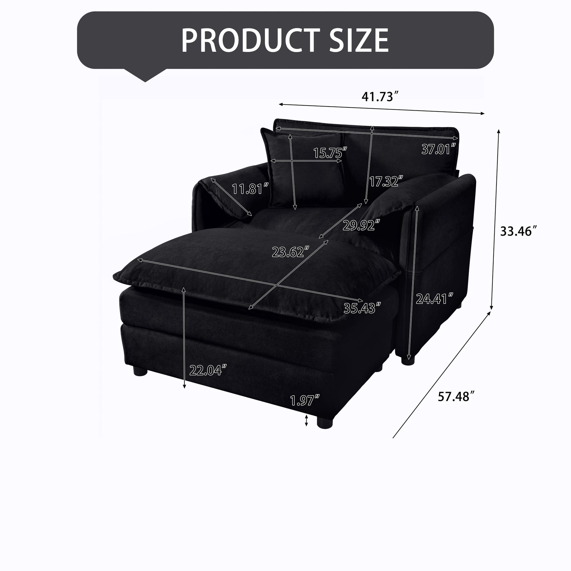 Oversized Recliner Chair With Movable Ottoman, Soft Chenille Upholstered Indoor Lounge Chair - Black