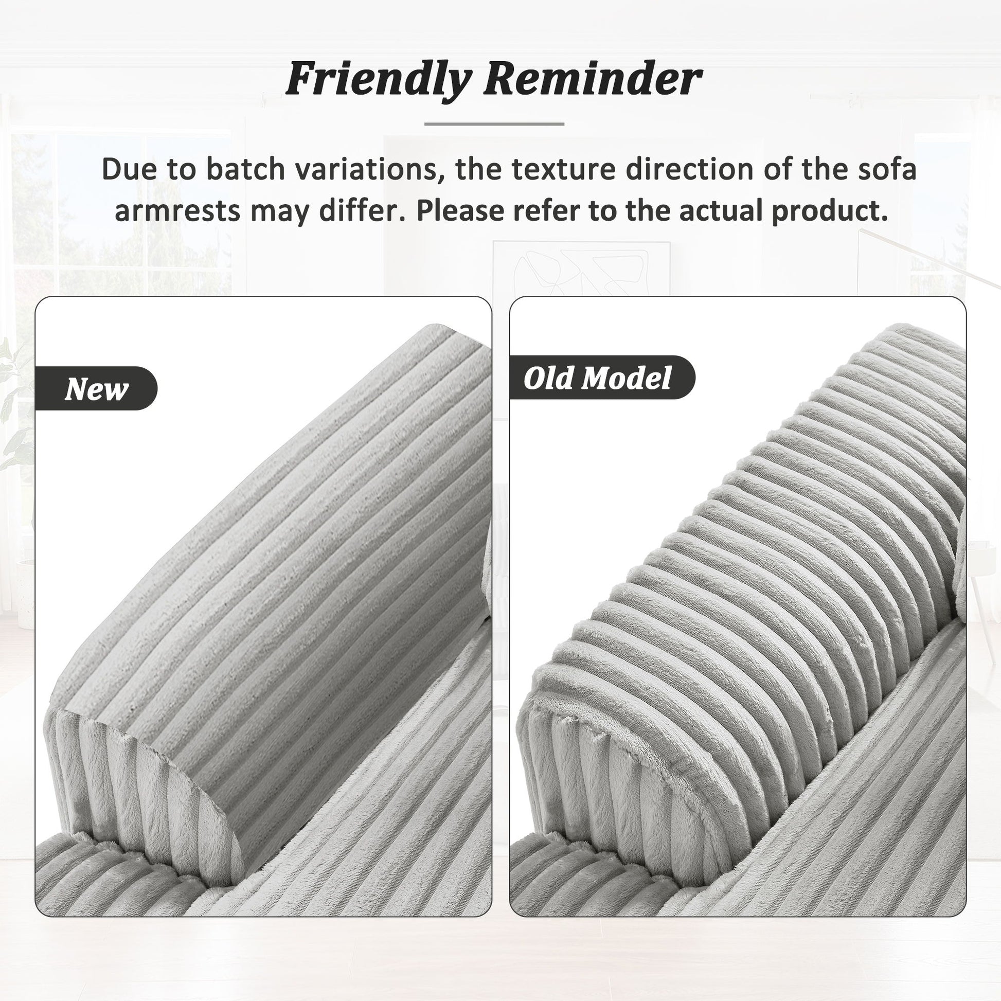Oversized Sectional Sofa U - Shaped Sofa Couch Modern Sofa Upholstered In Soft Corduroy With A Chaise Lounge For Living Room - Gray