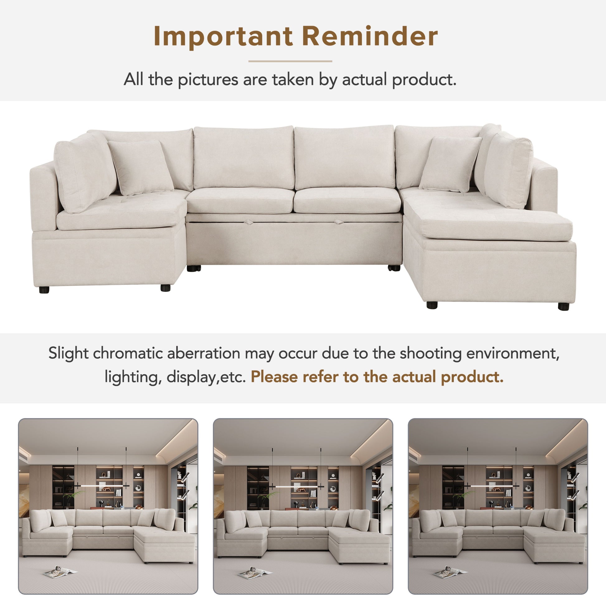 Oversized Sectional Sofa U-Shaped Sofa Couch Pull-Out Sofa Bed With Two Throw Pillows For Living Room - Beige