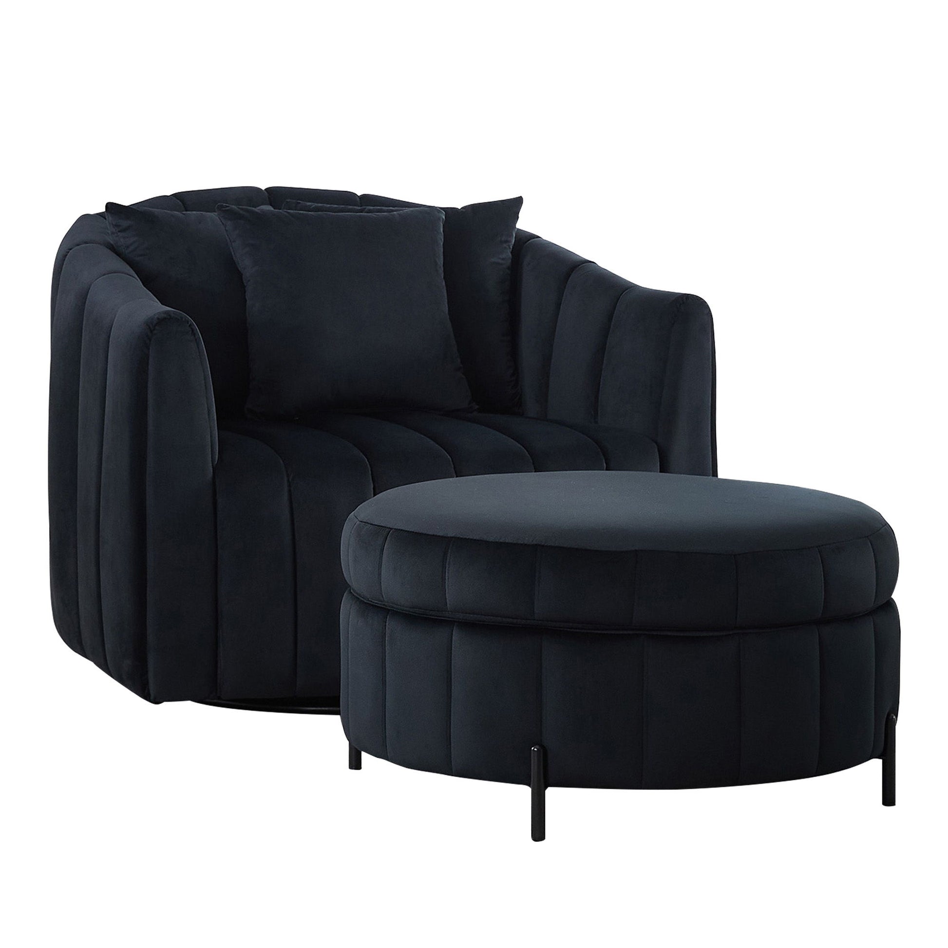 Oversized Swivel Barrel Accent Chair And Ottoman Set With Storage - Black