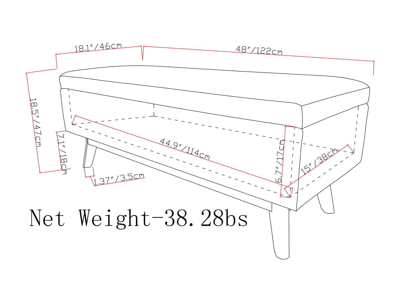 - Dimensions: 18.1" D x 48" W x 18.5" H