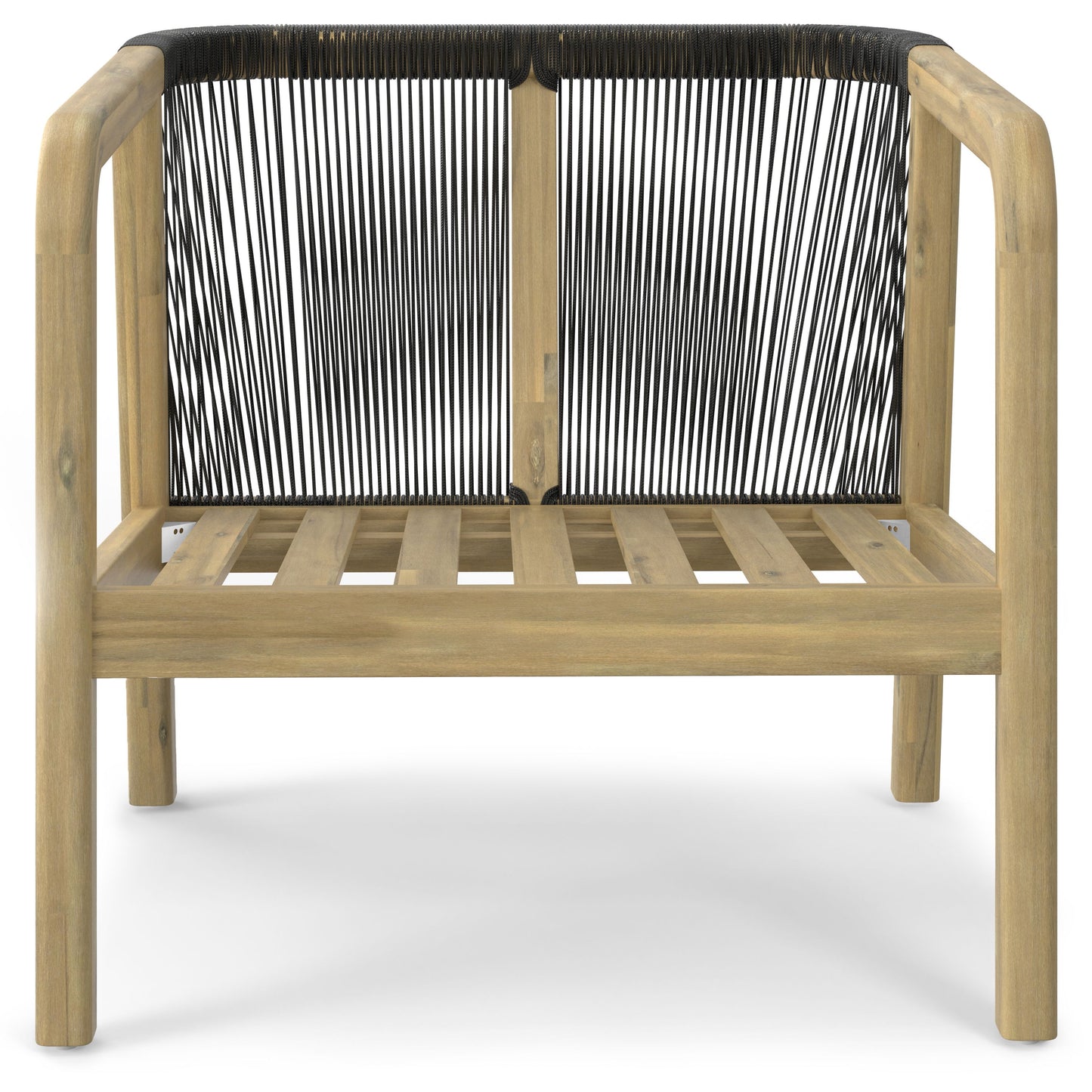 - Features a unique design, the solid acacia frame on the seat back is hand wrapped with highly durable woven grey rope cording