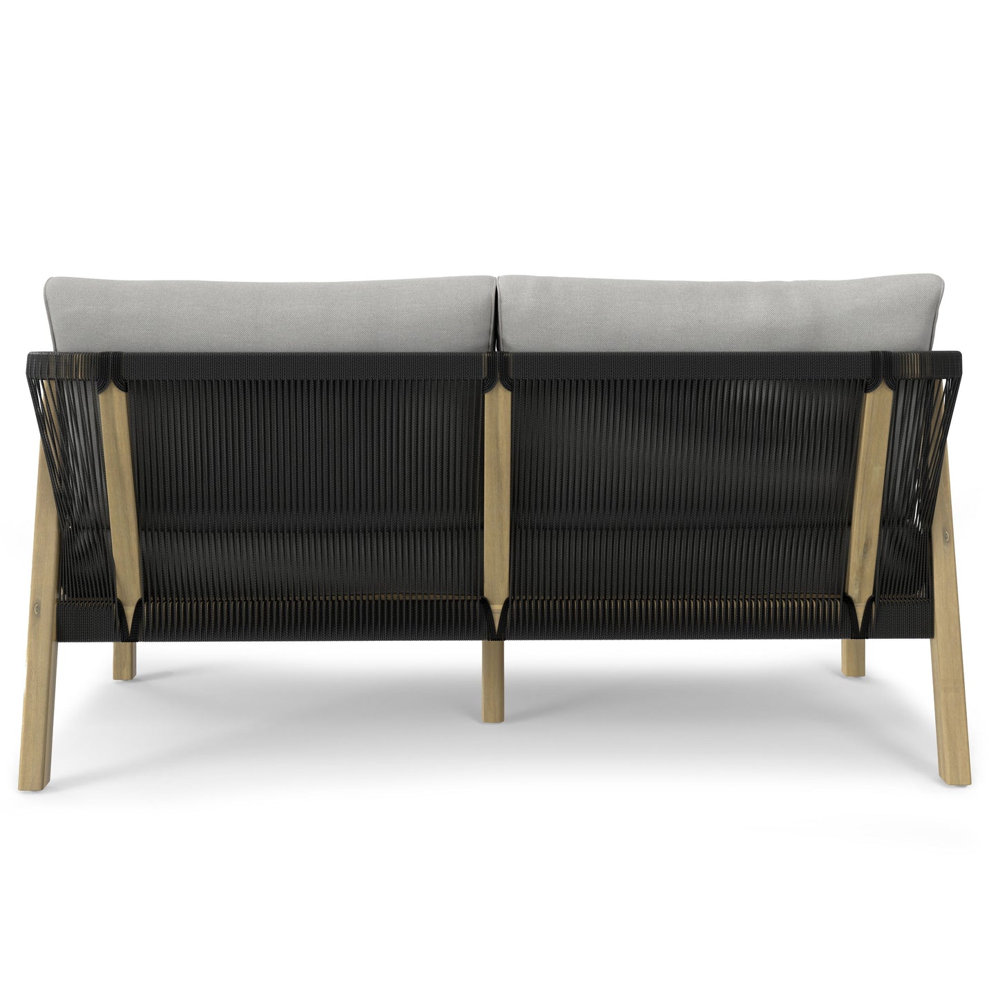- Features a unique design, the solid acacia frame on the seat back is hand wrapped with highly durable woven grey rope cording