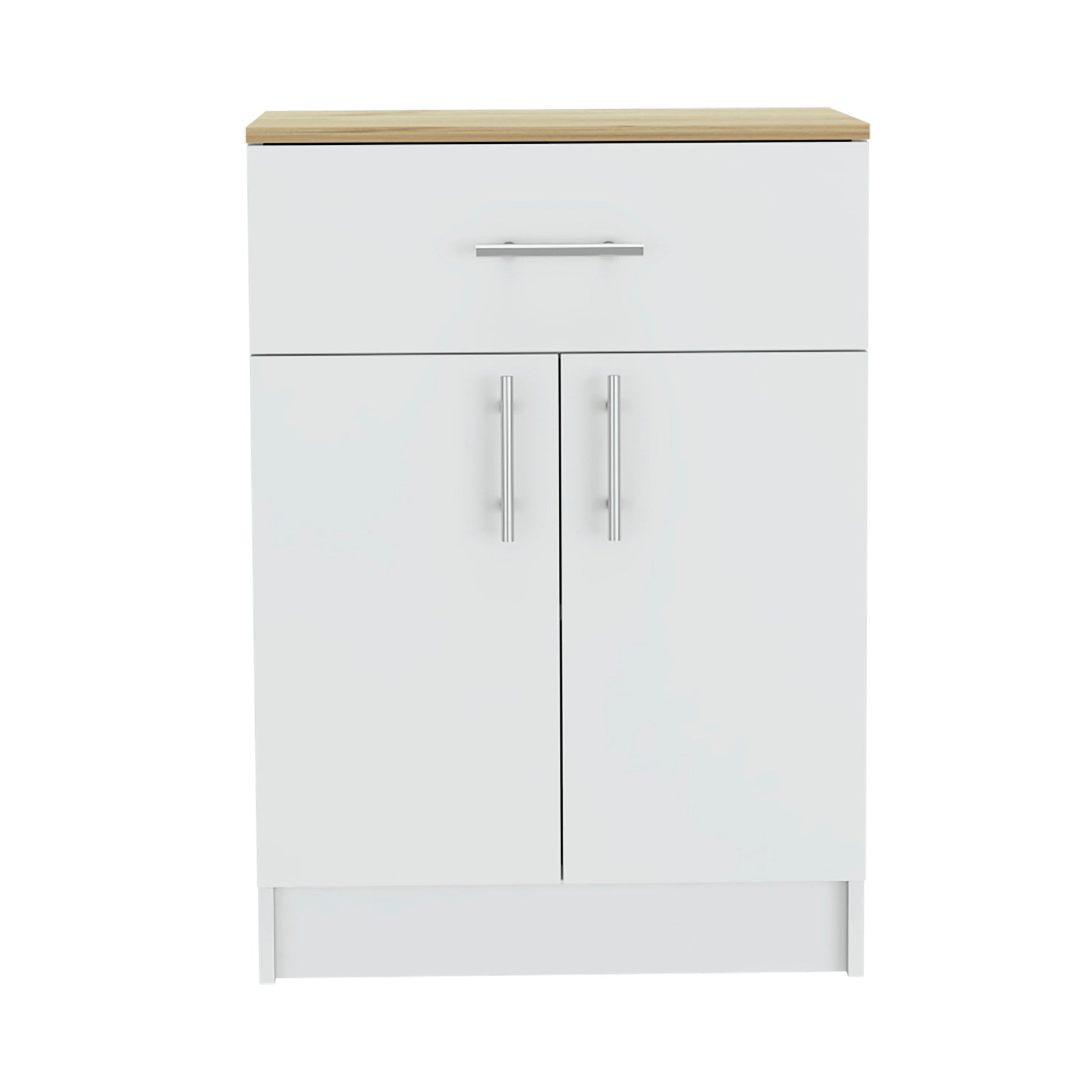Pantry Organizer Cabinet One Drawer, Two Interior Shelves, Two Doors - White / Light Oak
