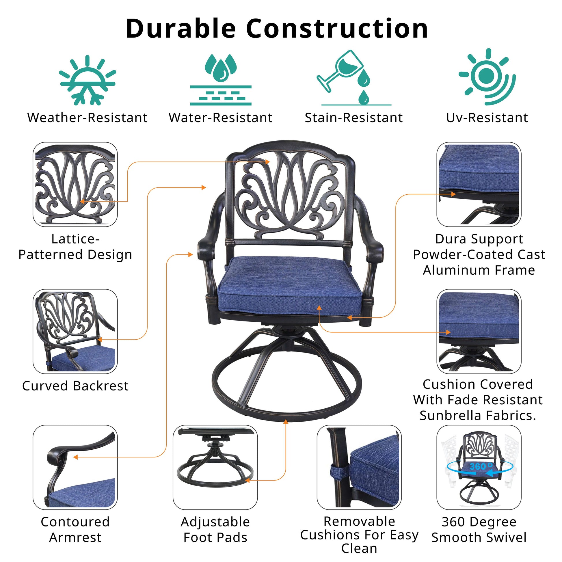 Patio Outdoor Aluminum Dining Swivel Rocker Chairs With Cushion (Set of 2) - Navy Blue