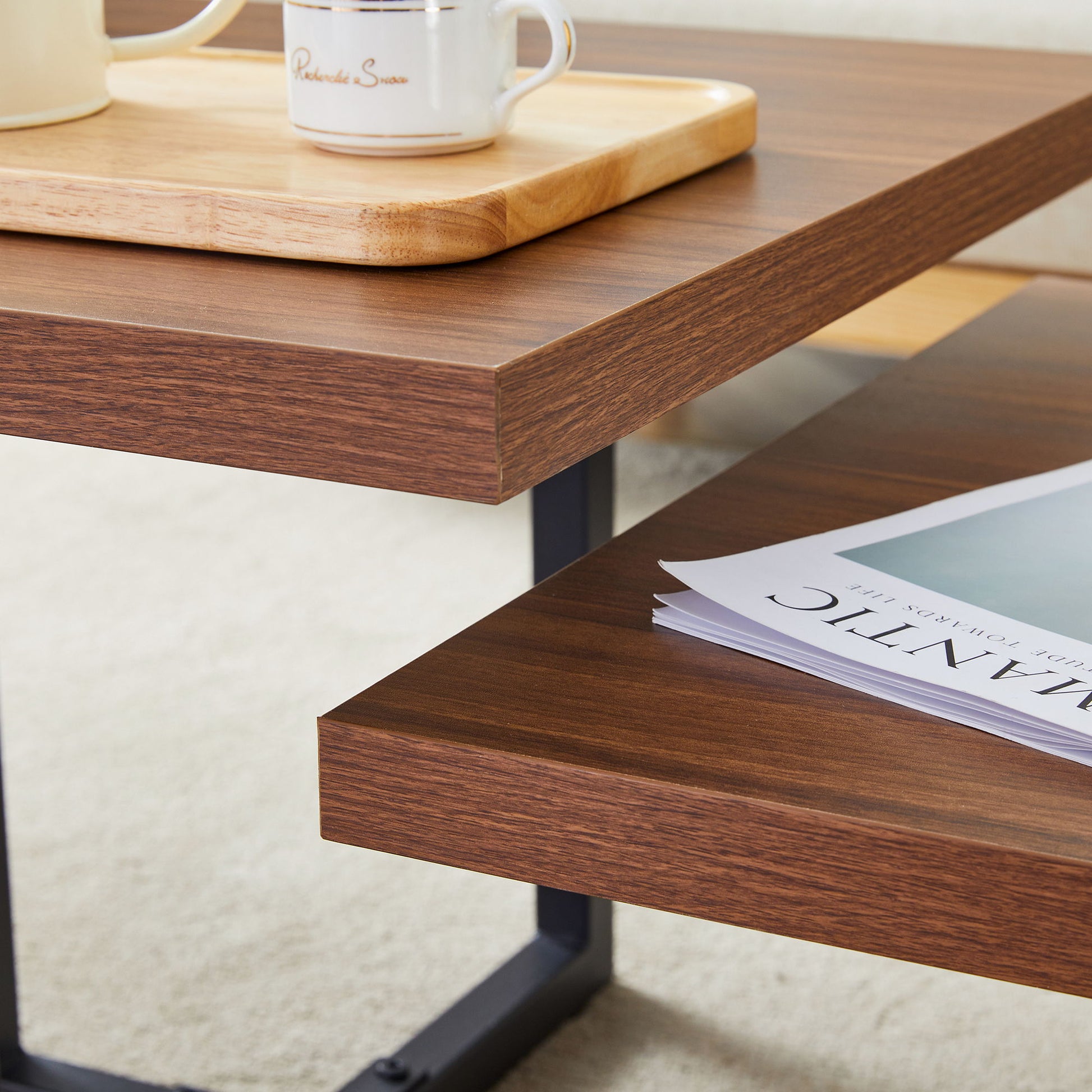 Perfectly Integrating Modern And Scandinavian Styles Double Deck Coffee Table - Walnut