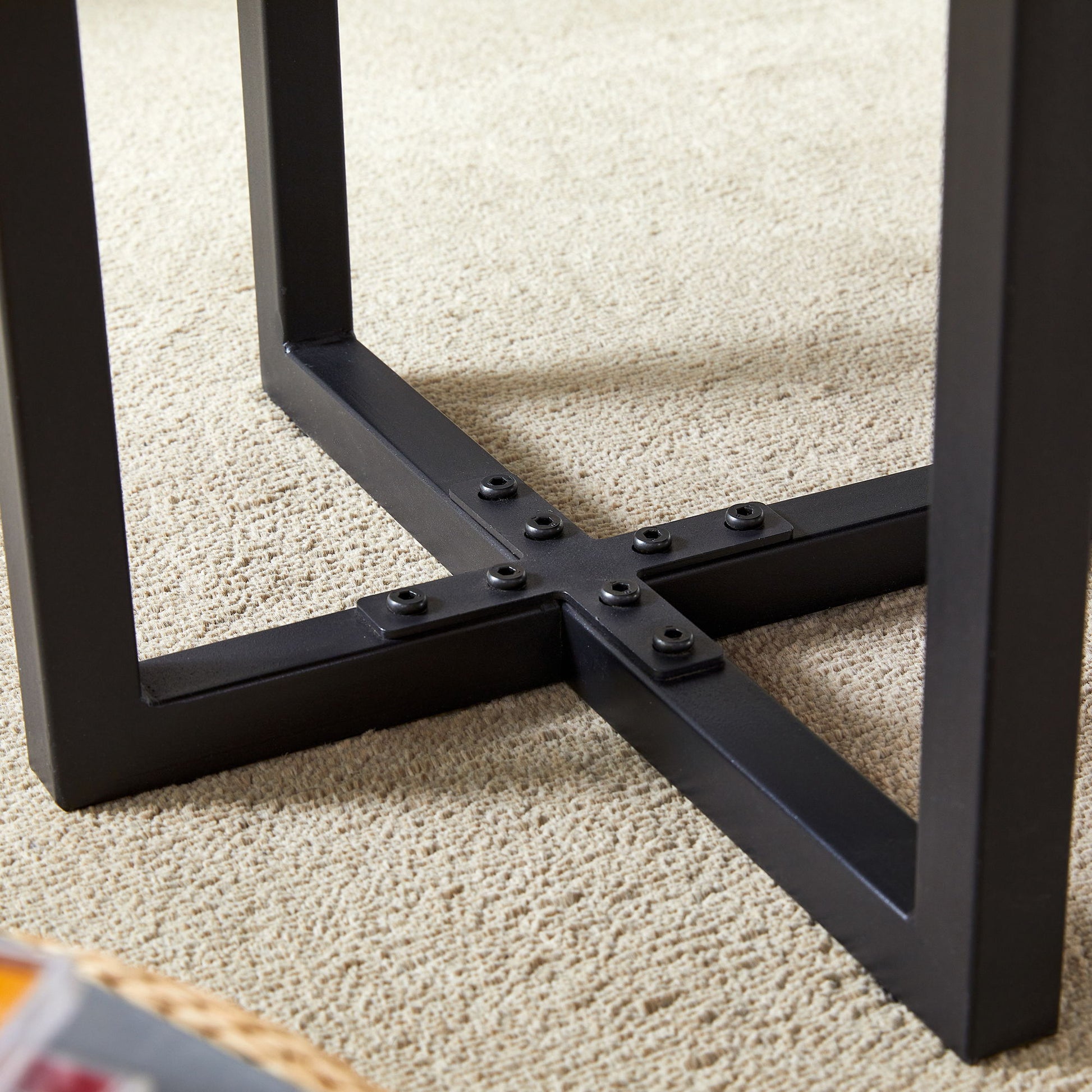 - Black Metal Frame: The sturdy black metal frame enhances stability and provides a striking contrast against the wood finish, adding to its modern appeal.