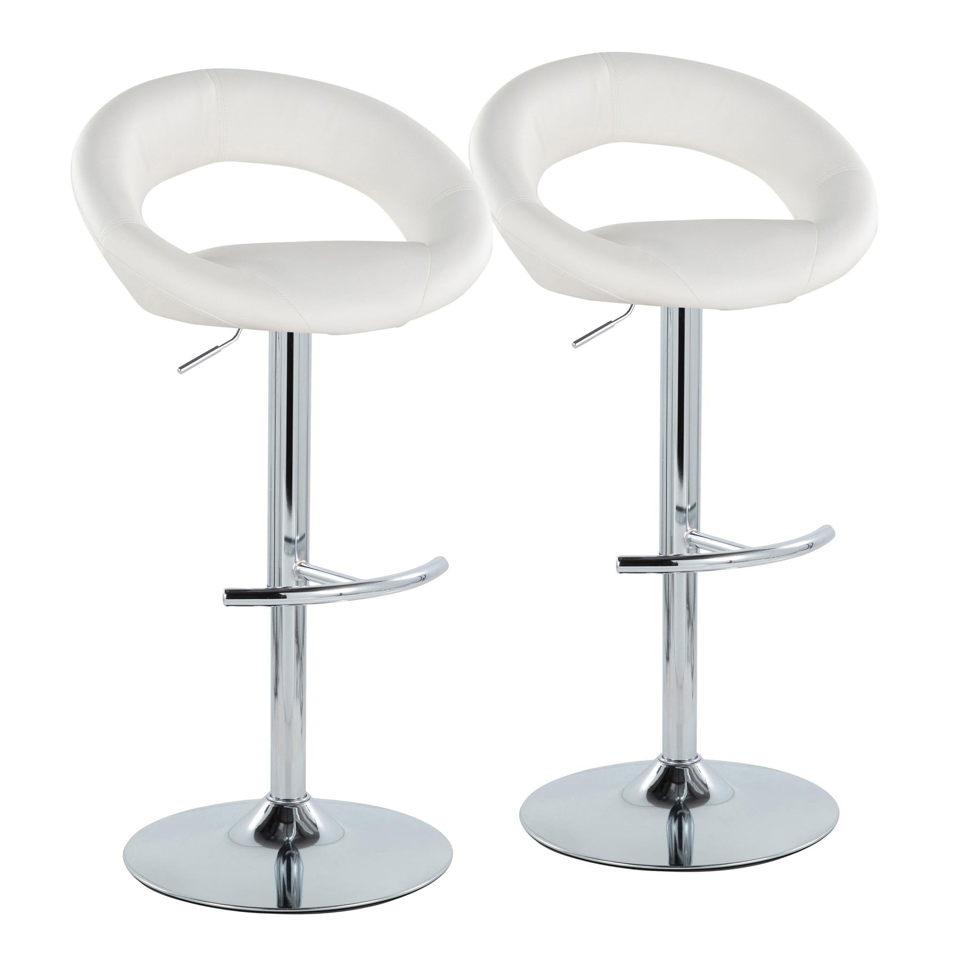 Posh - Contemporary Adjustable Barstool With Swivel With Rounded T Footrest (Set of 2) - Chrome / White