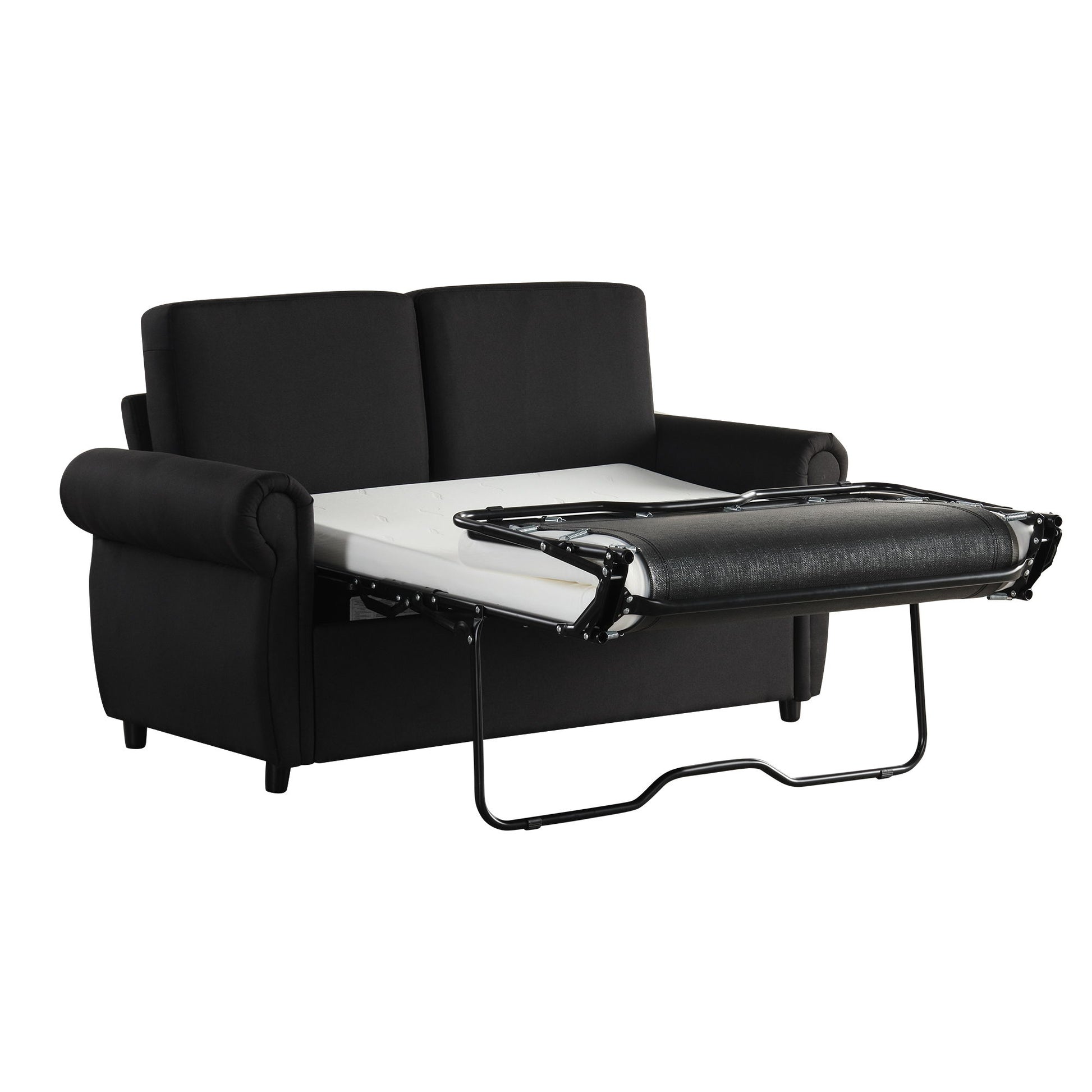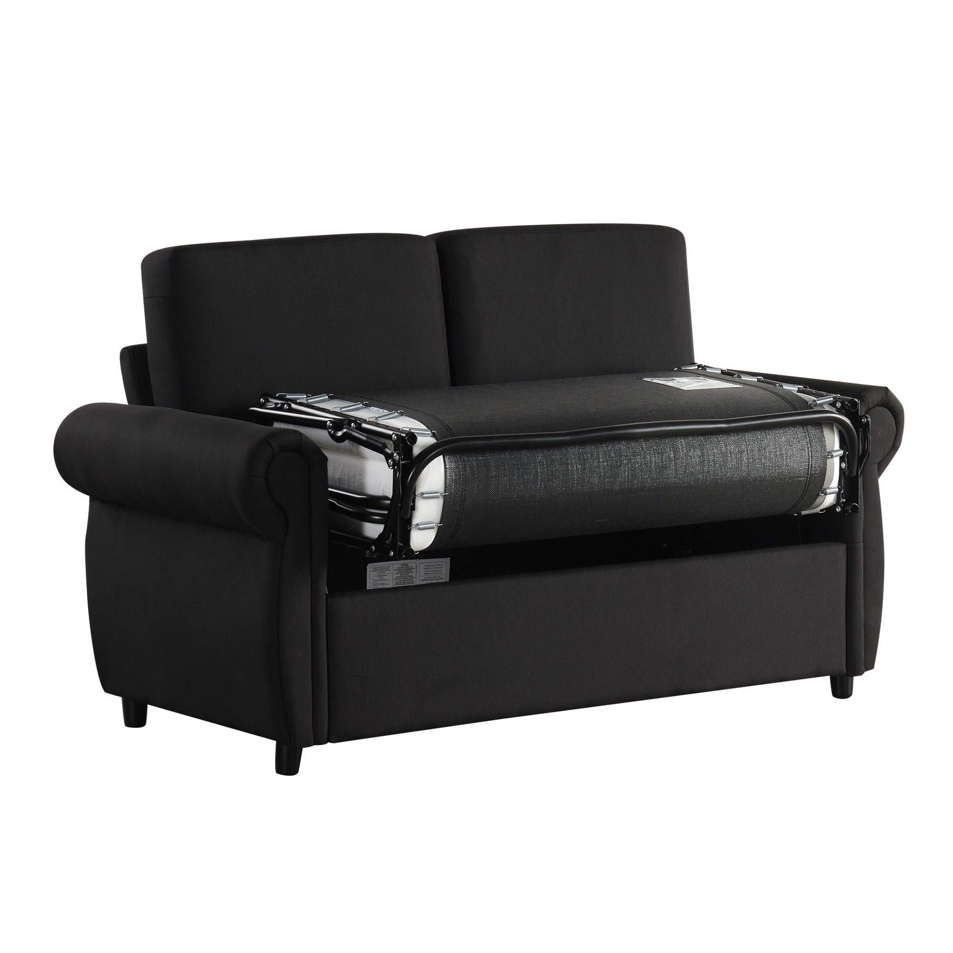 Pull Out Sofa Bed Loveseat Sleeper With Twin Size Memory Mattress With Two USB Ports For Living Room Spaces - Black