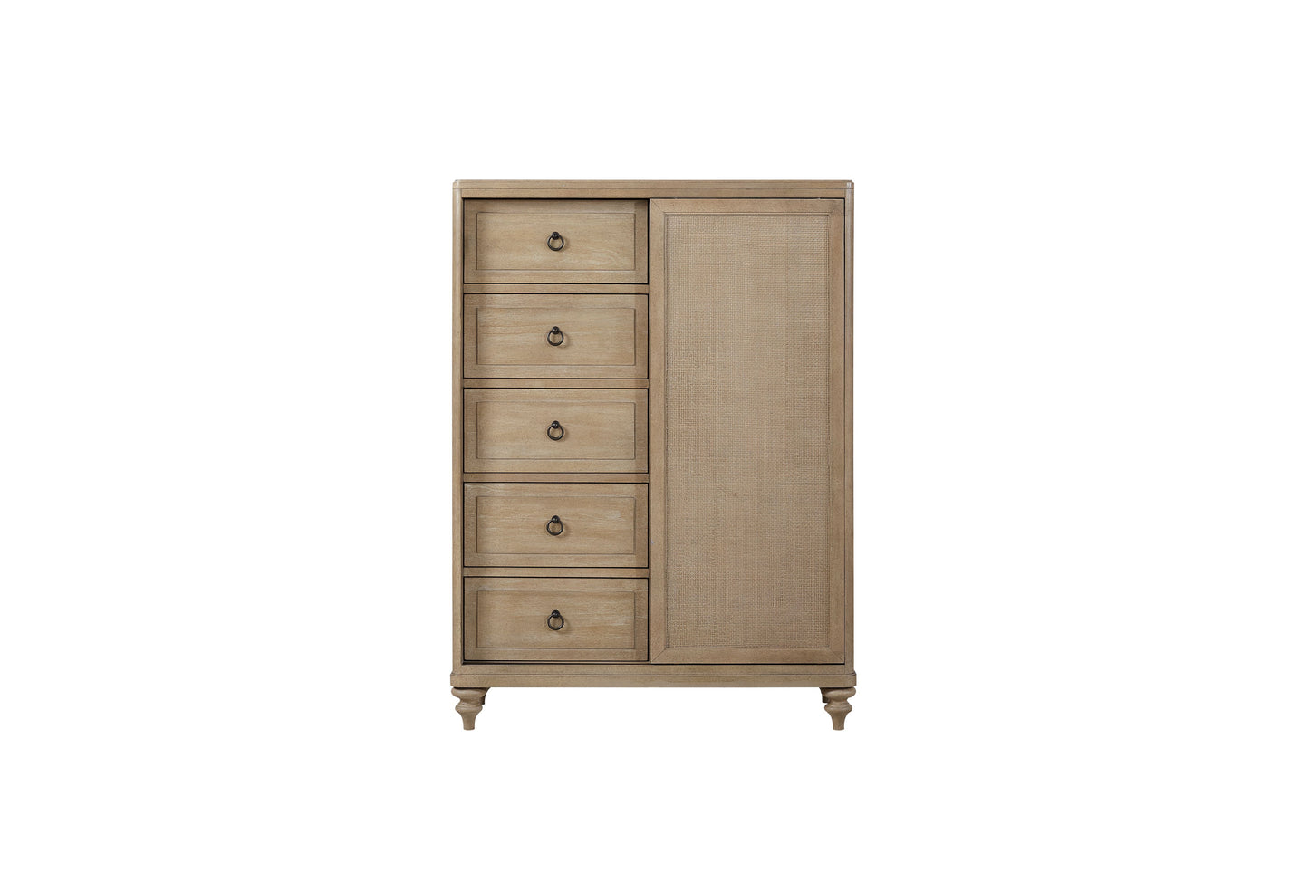 - Design and Finish: The bedroom set features a sand finish with a casual transitional design, blending traditional and contemporary styles for a versatile look.