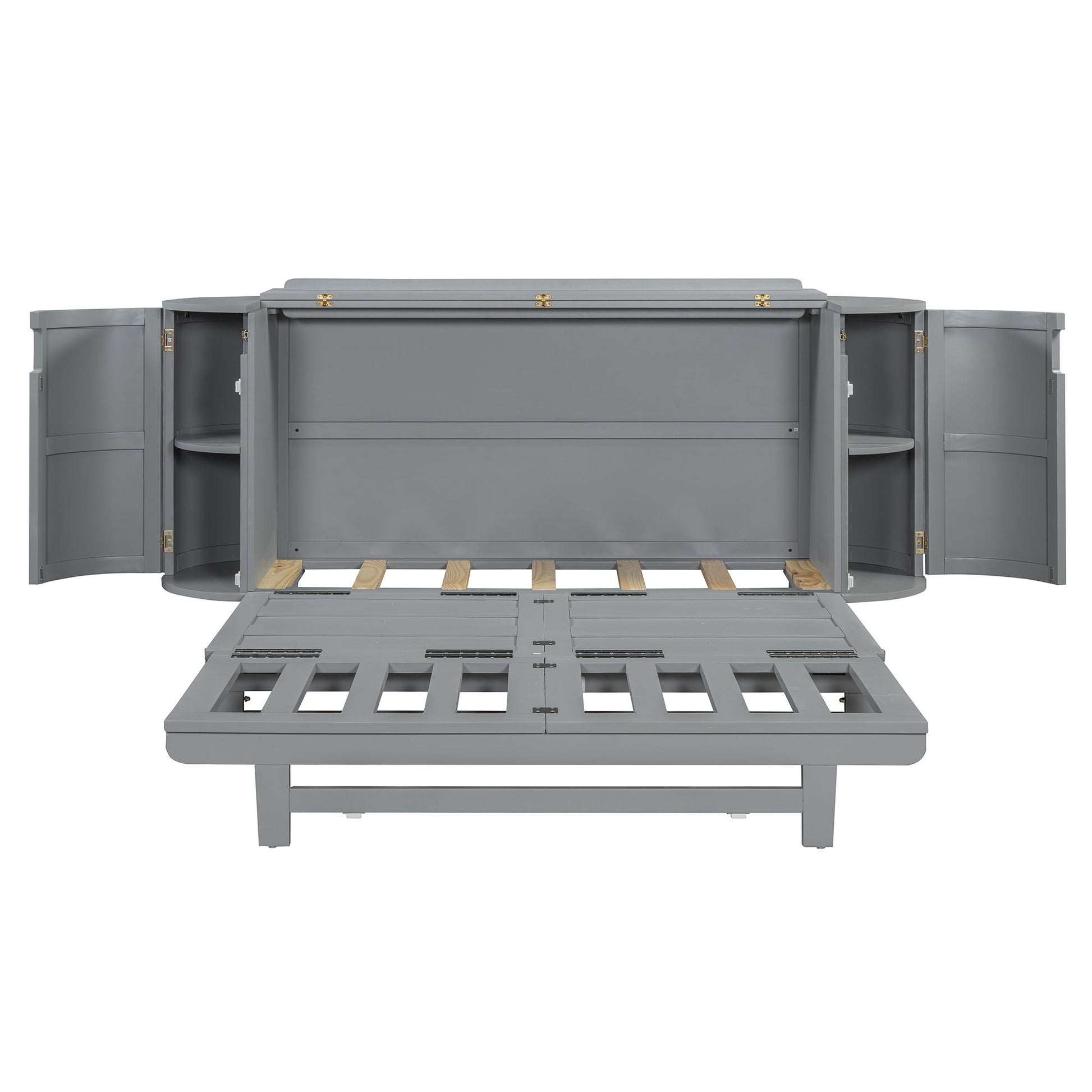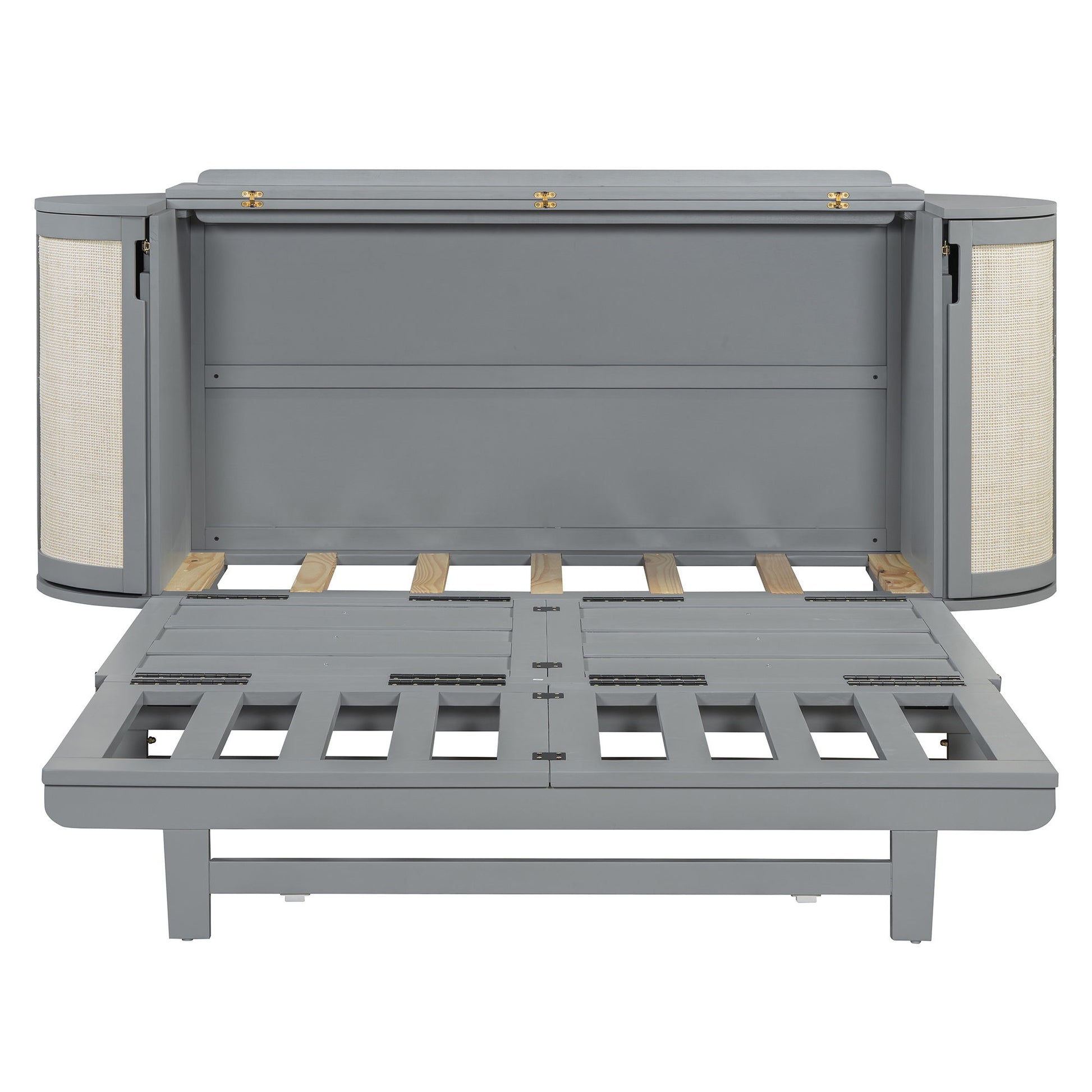 Queen Murphy Bed With Hidden Storage & Modern Woven Design - Gray