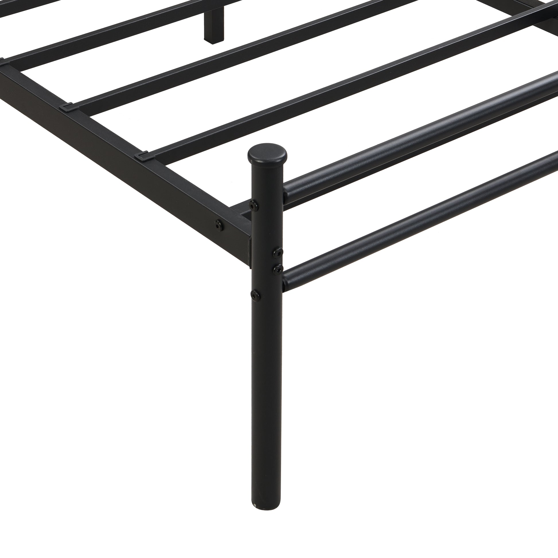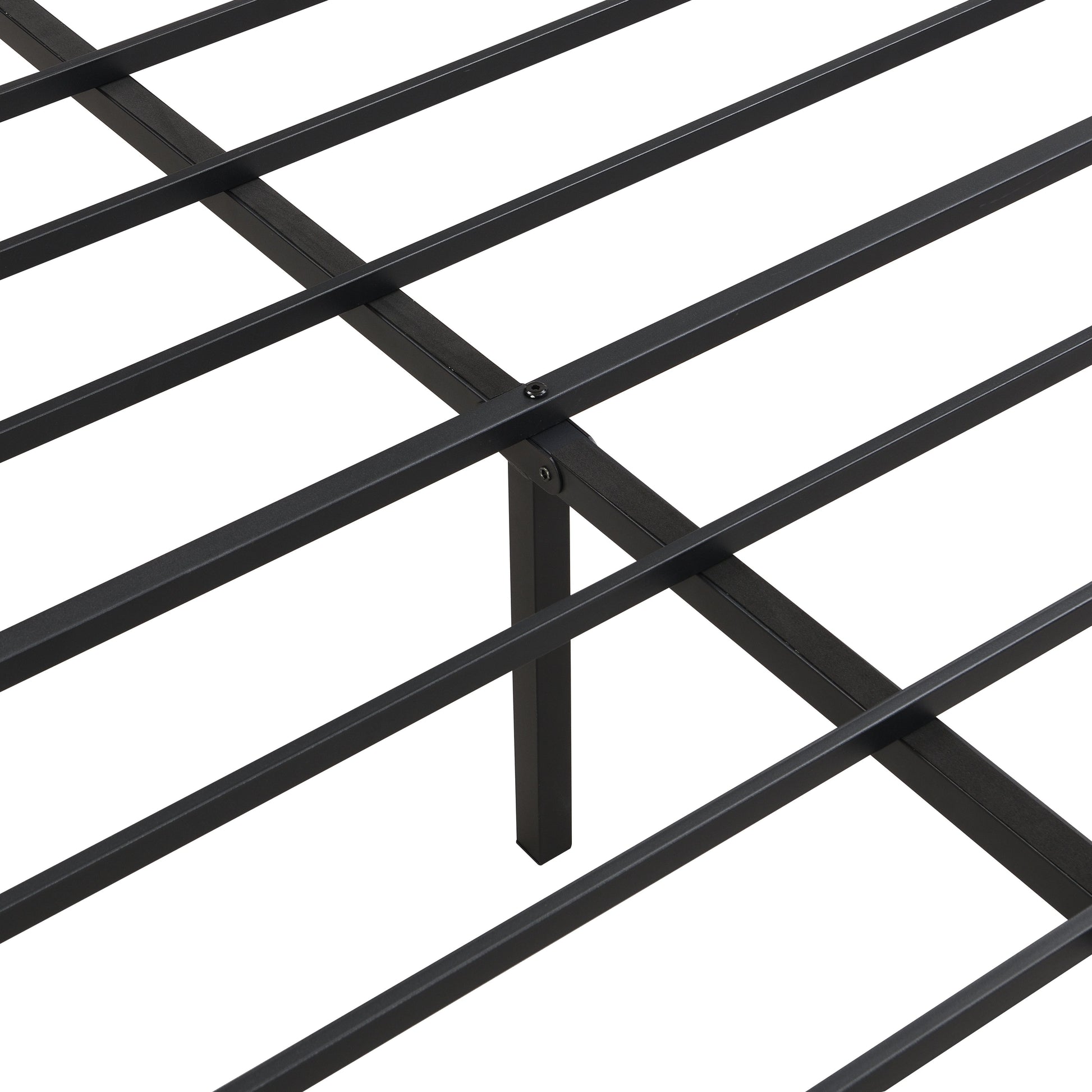 Queen Size Modern Metal Bedframe With Headboard, Durable Steel Structure - Black / Brown