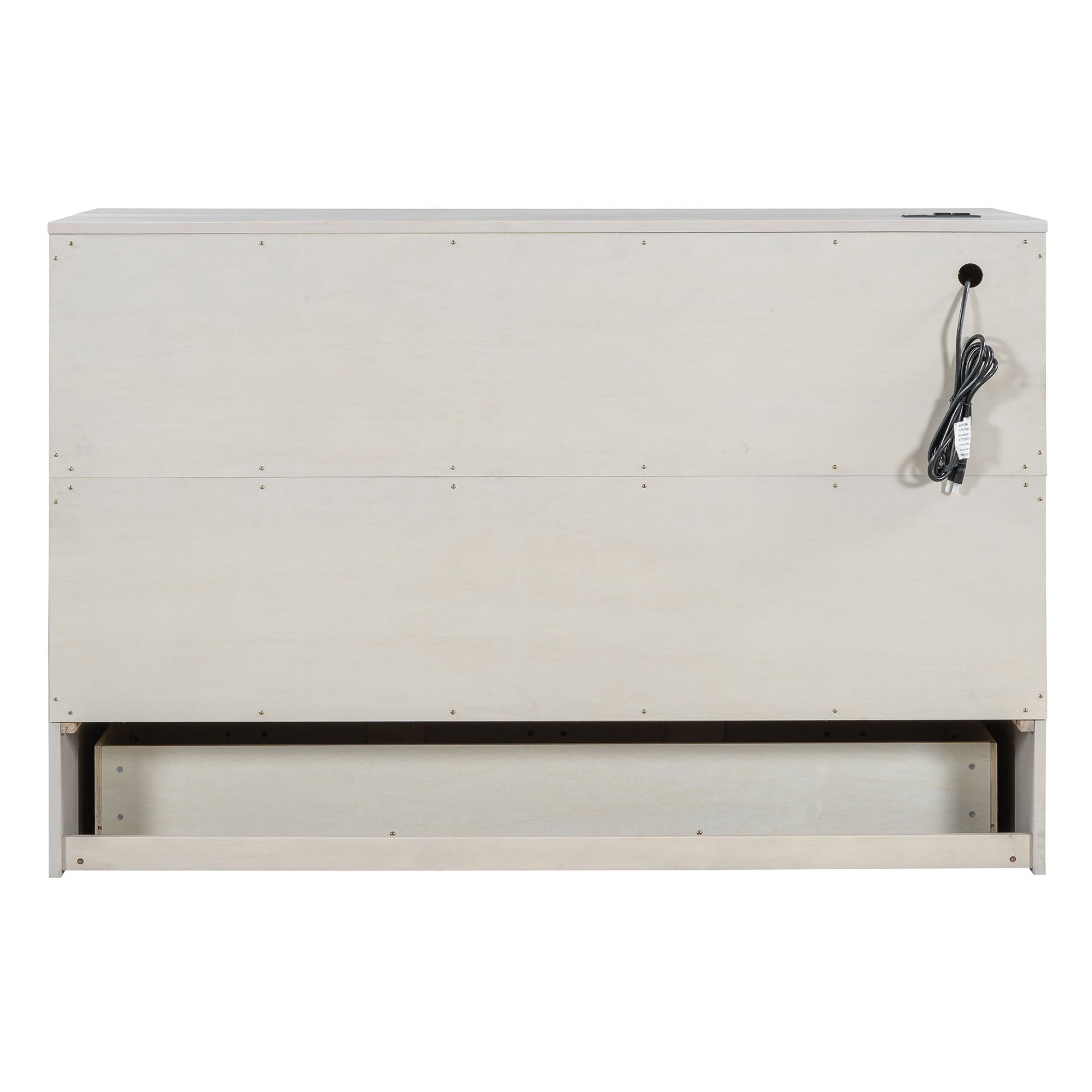 Queen Size Murphy Bed With Large Drawers - Brushed White