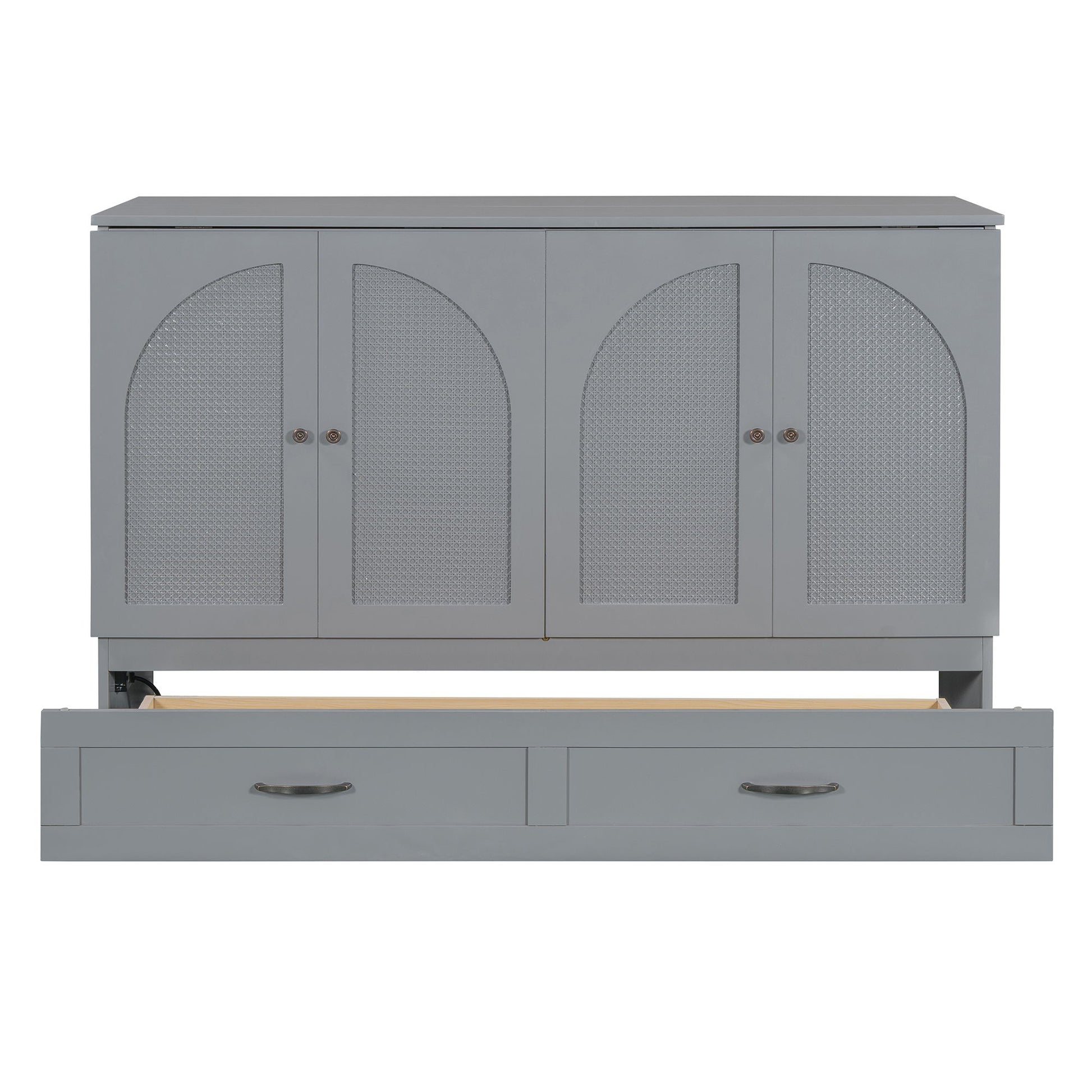 Queen Size Murphy Bed With Large Drawers - Gray