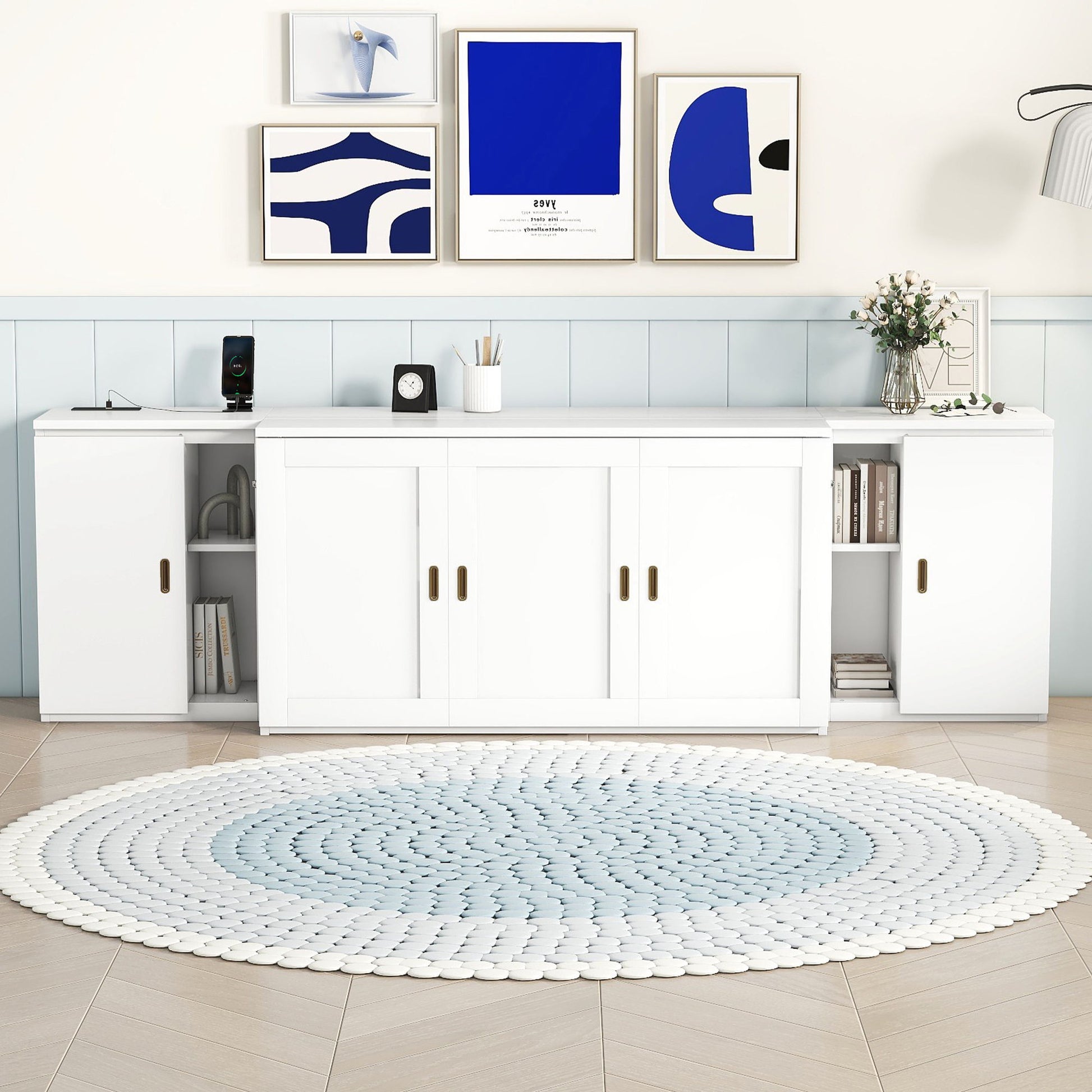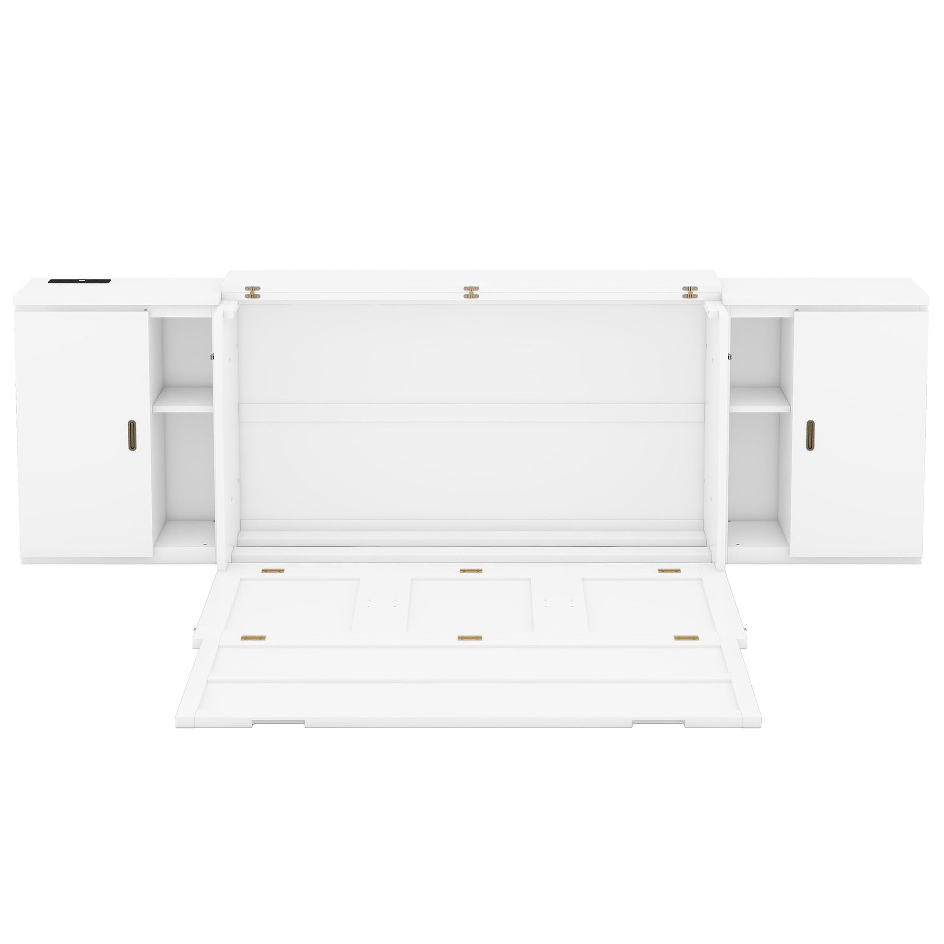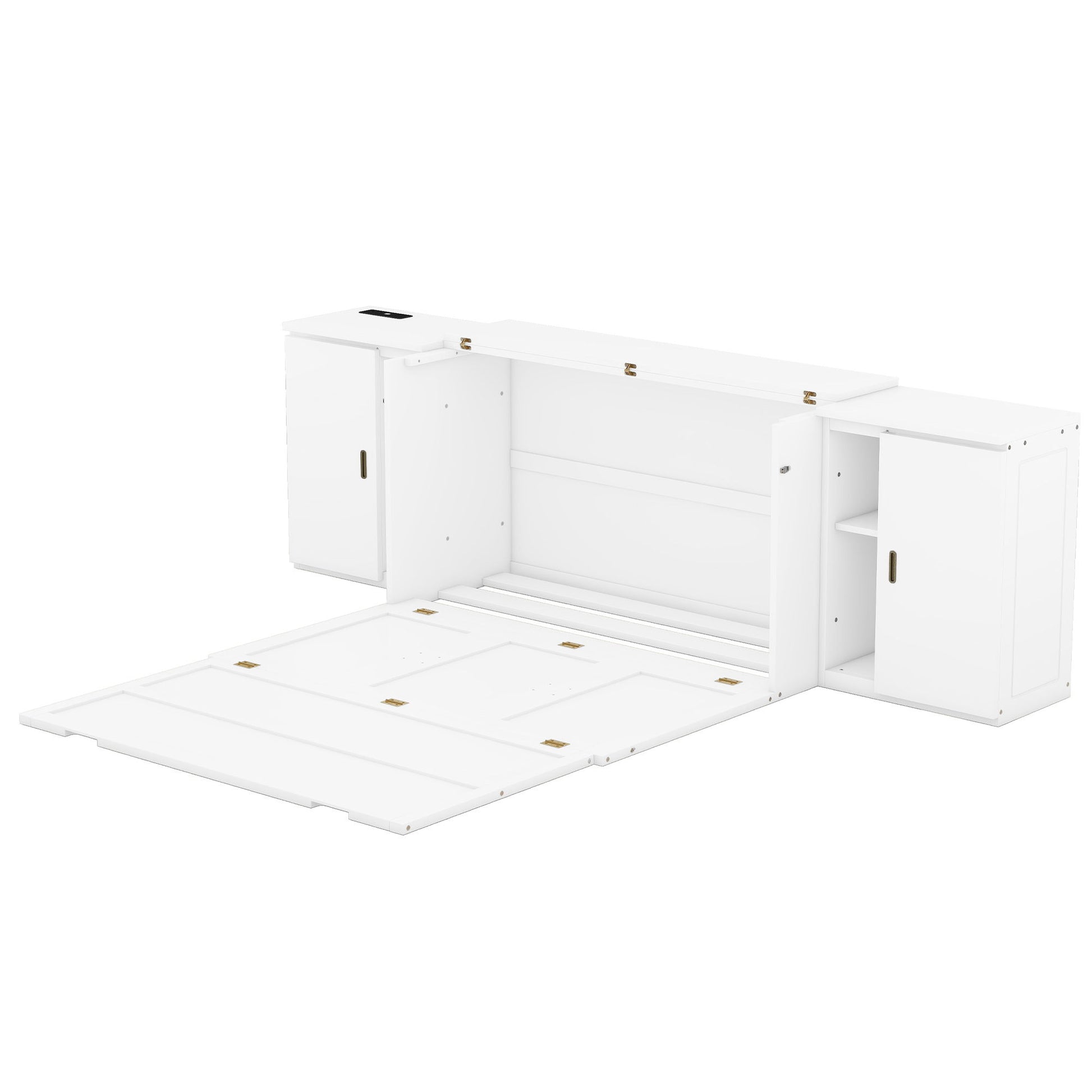 Queen Size Murphy Bed With Shelves, Cabinets And USB Ports - White