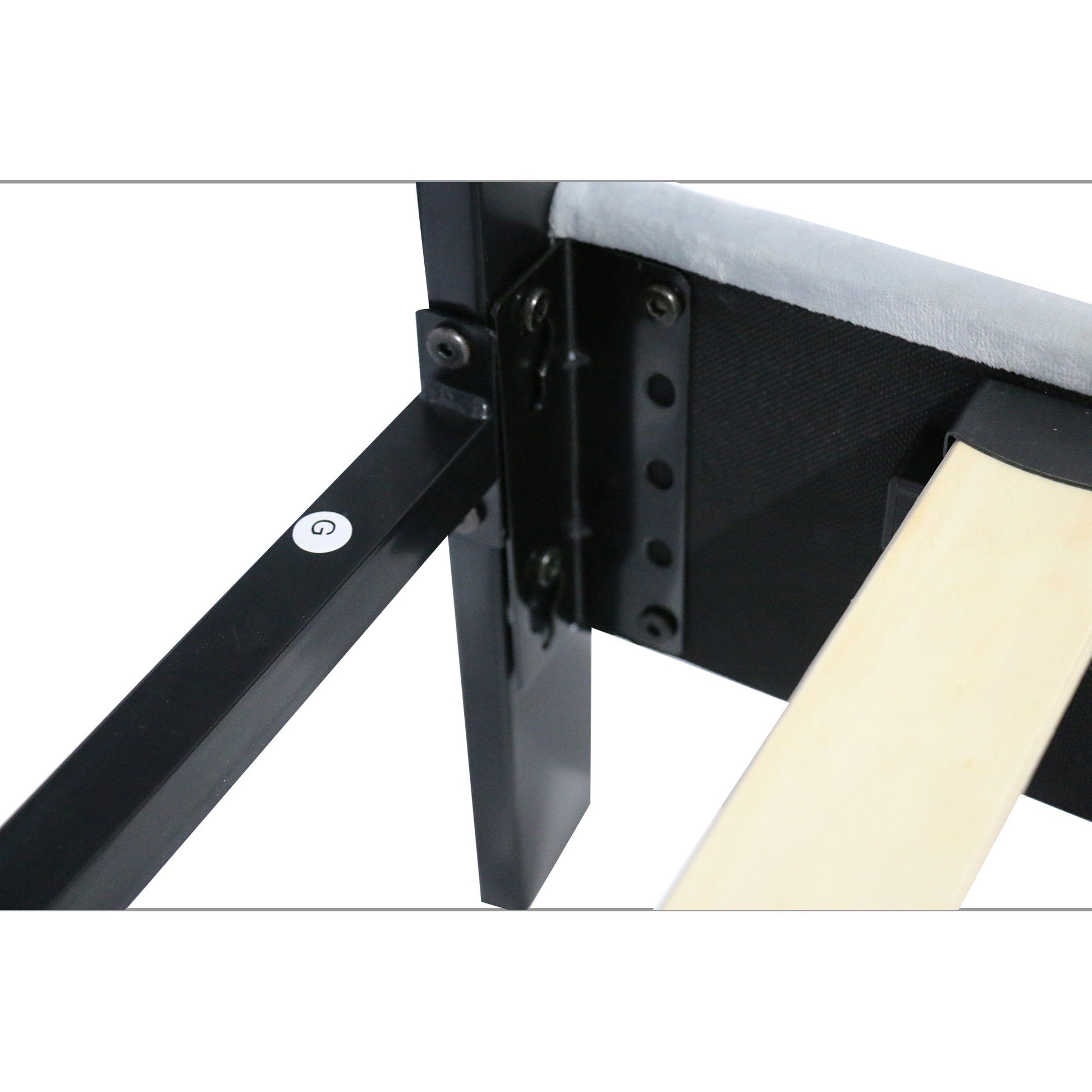 Queen Size Upholstered Platform Bed Frame With Pull Point Tufted Headboard, Strong Slat Support, Mattress Foundation, No Box Spring Needed - Gray