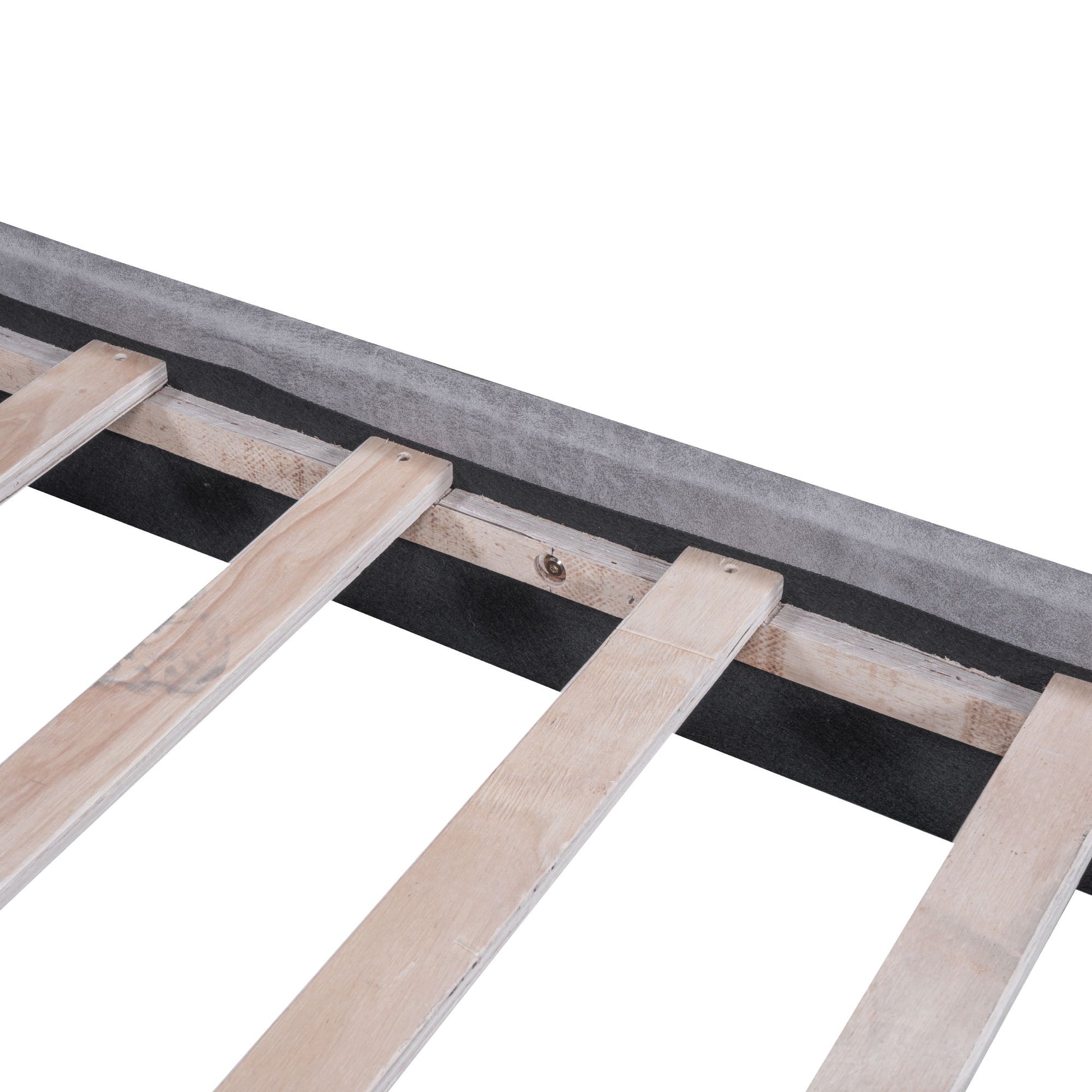 This beautiful upholstered platform bed adds a contemporary chic look to your bedroom and is upholstered in thick polyester fabric for extra comfort. Two large headrests at the headboard provide luxurious comfort and support for lounging, reading, or watching TV in bed. The sturdy wood frame construction and wooden slat system ensure stability and safety. Enjoy years of relaxation and family fun with this meticulously designed platform bed that serves as both a beautiful room centerpiece and a cozy family retreat.