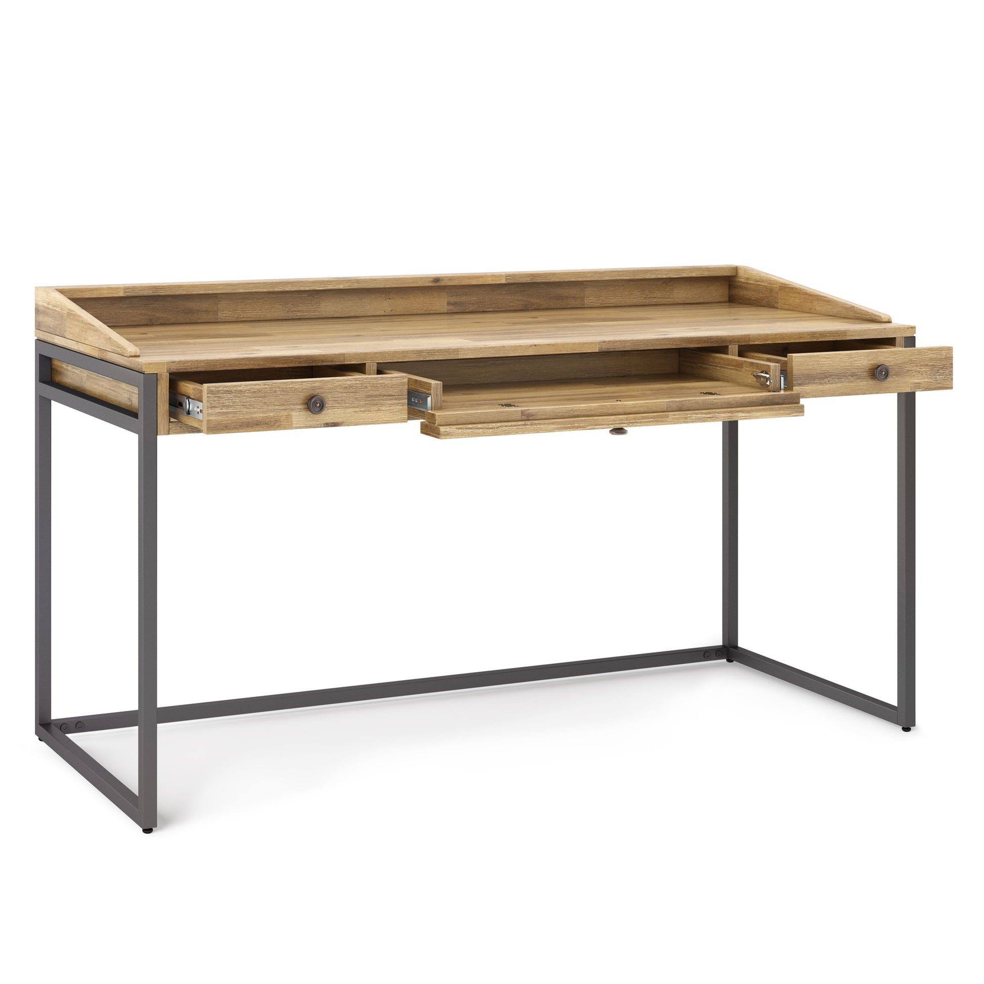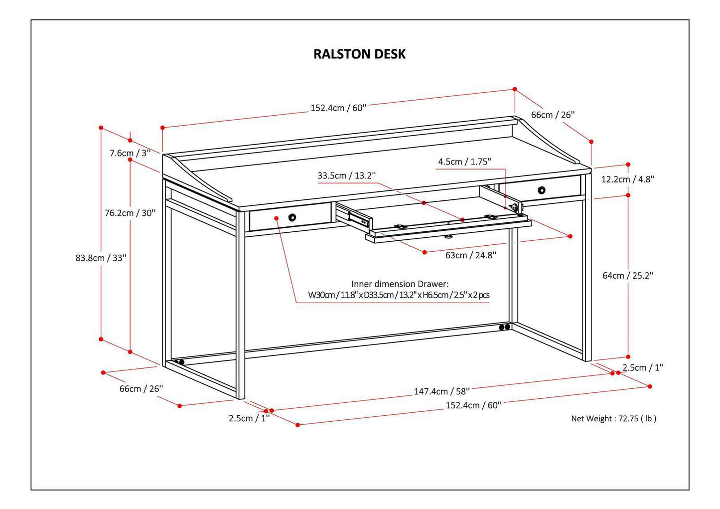 - Features a flip down pull-out keyboard tray, two (2) drawers with metal drawer glides and round bronze knobs