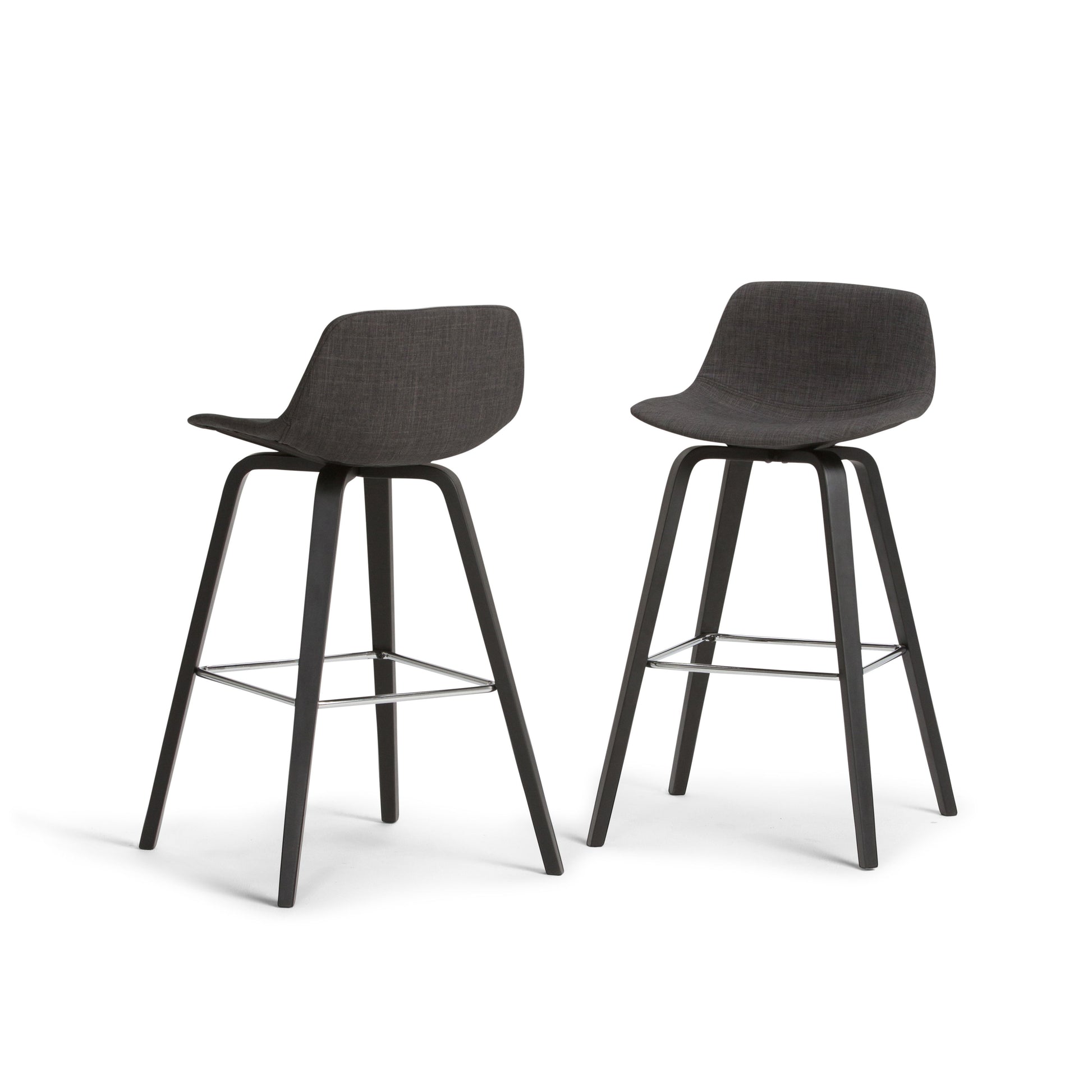- Upholstered with Charcoal Grey linen look fabric on curved seat and back