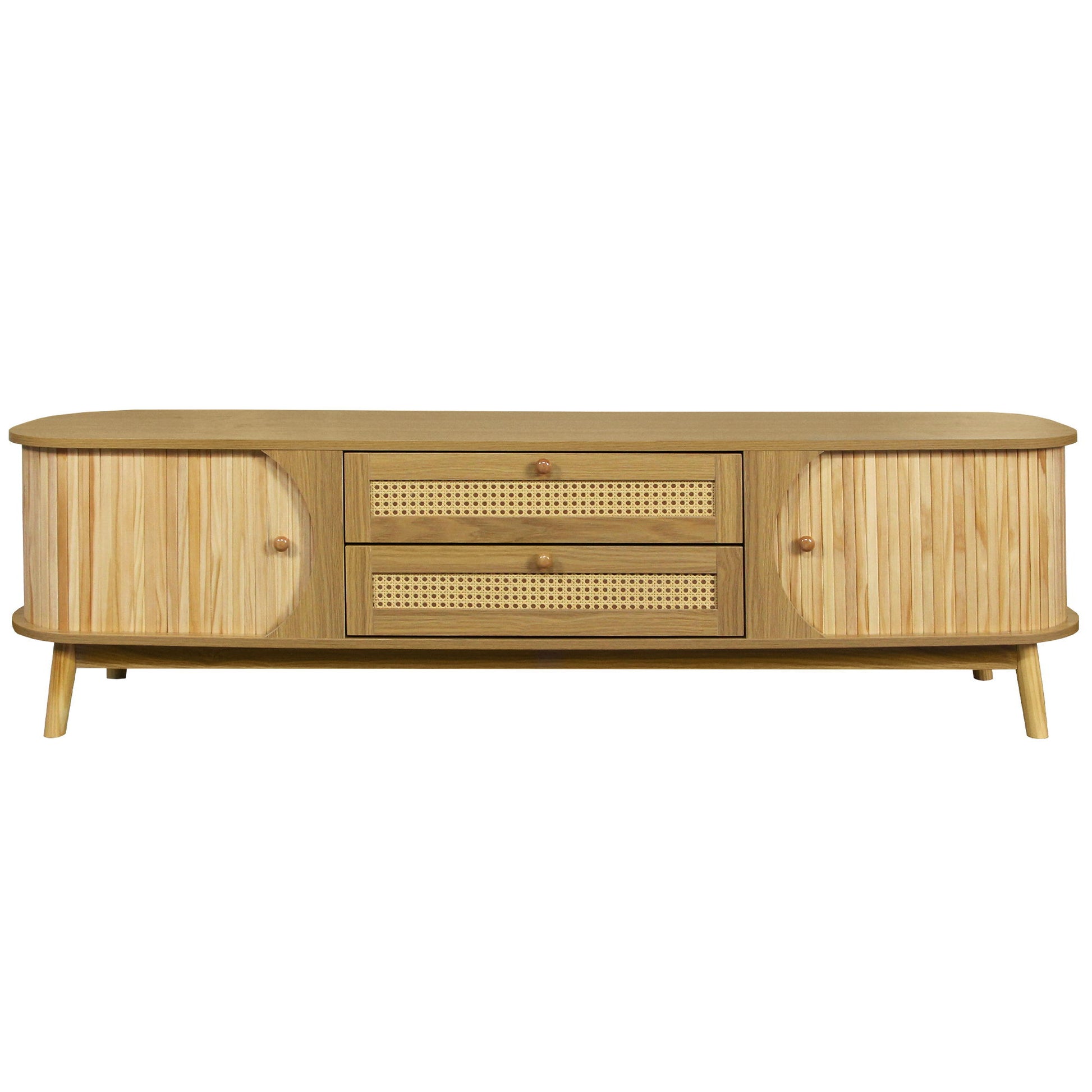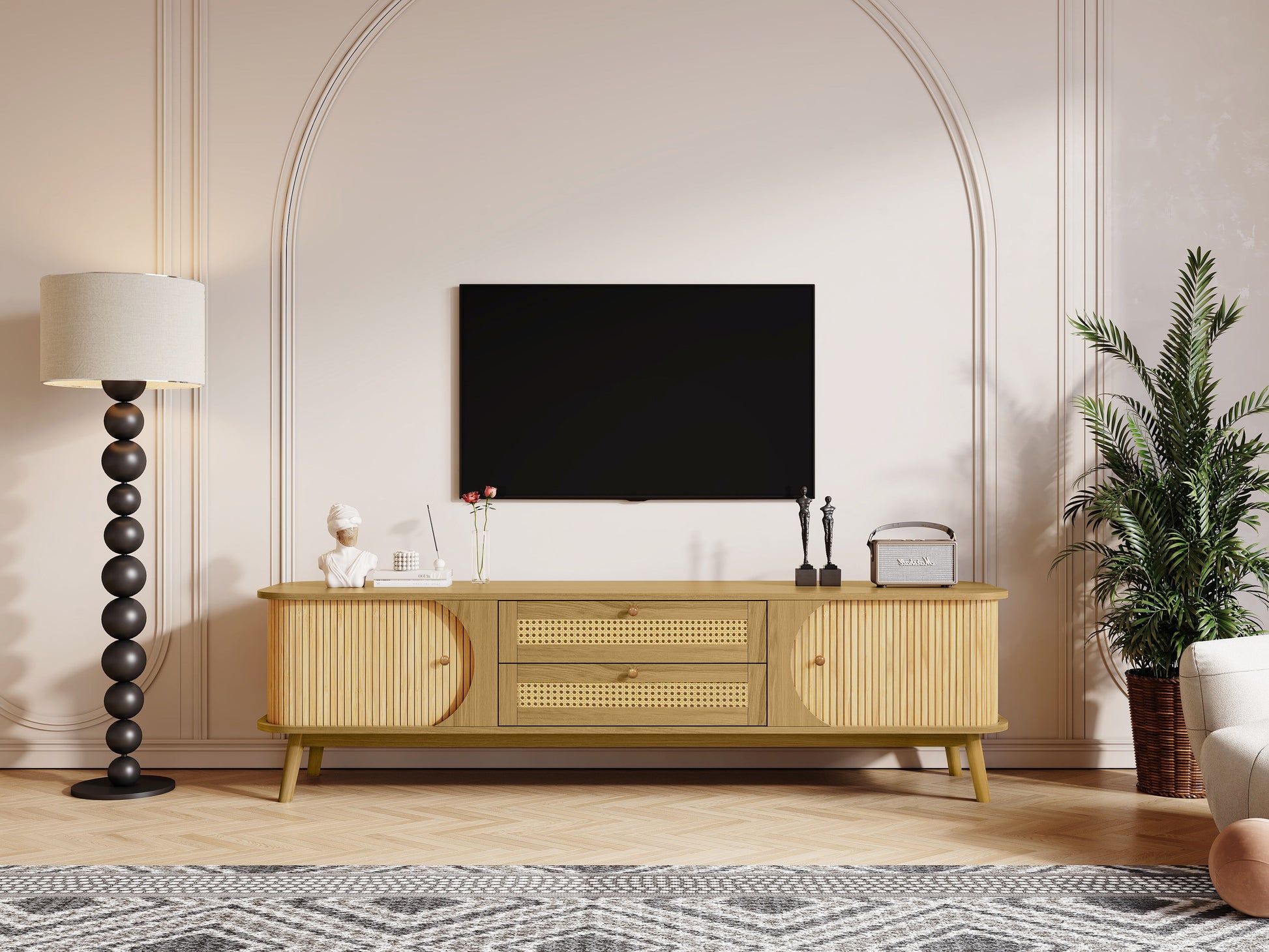 Rattan TV Stand For Tvs Up To 75'', Modern Farmhouse Media Console, Entertainment Center With Legs, TV Cabinet For Living Room, Home Theatre - Natural Wood