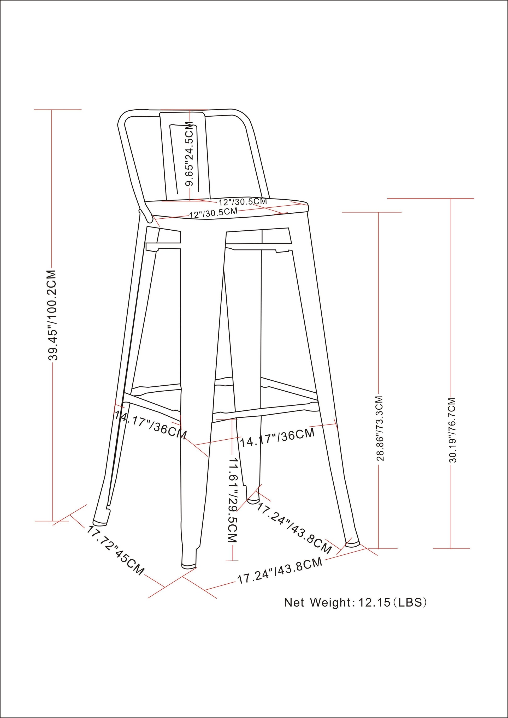 - Industrial styling, lightweight, Set of 2