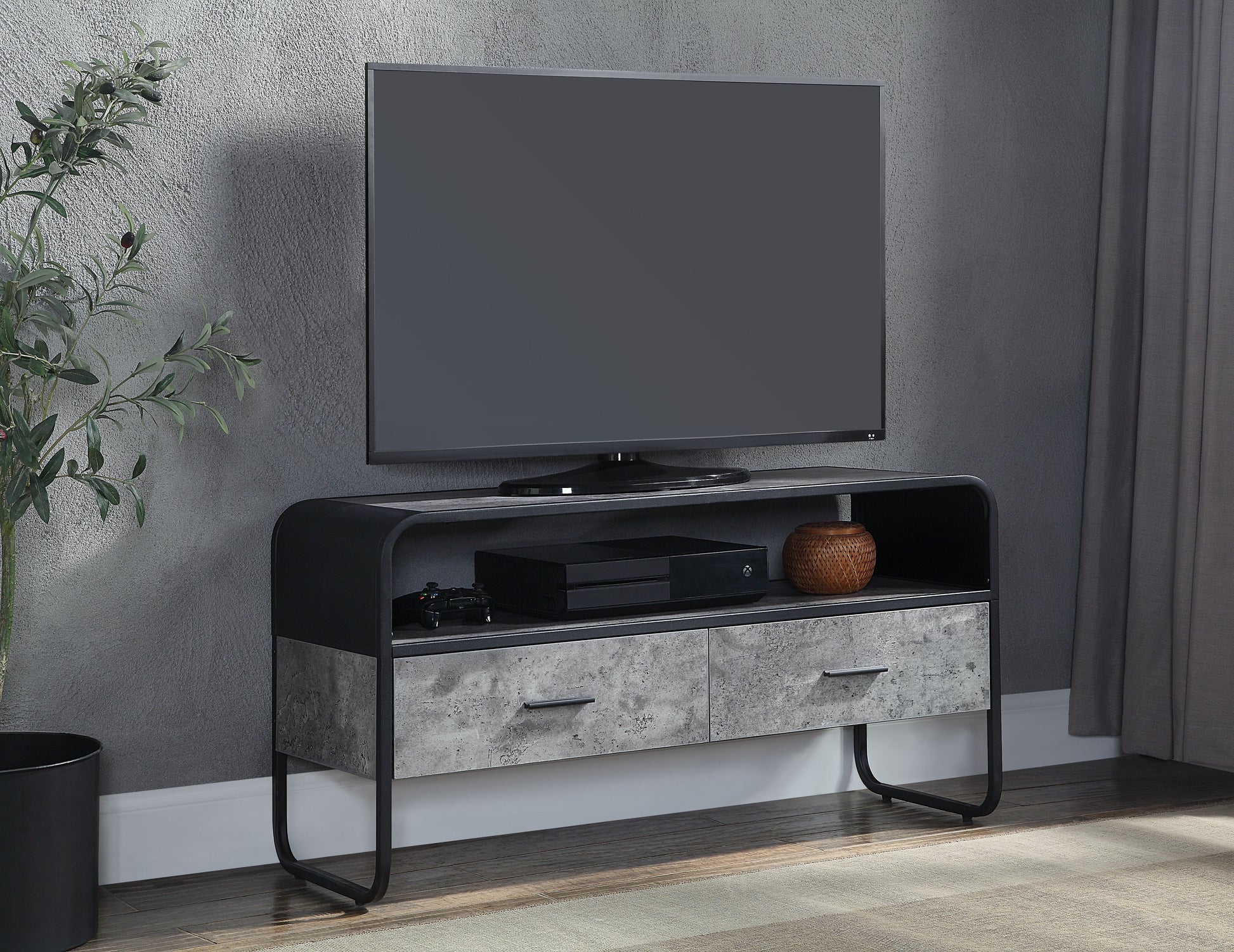 - Storage Options: Includes one open compartment and two storage drawers, with drawer dimensions of 17"L x 11"W x 3"H, offering ample space for organizing media accessories.