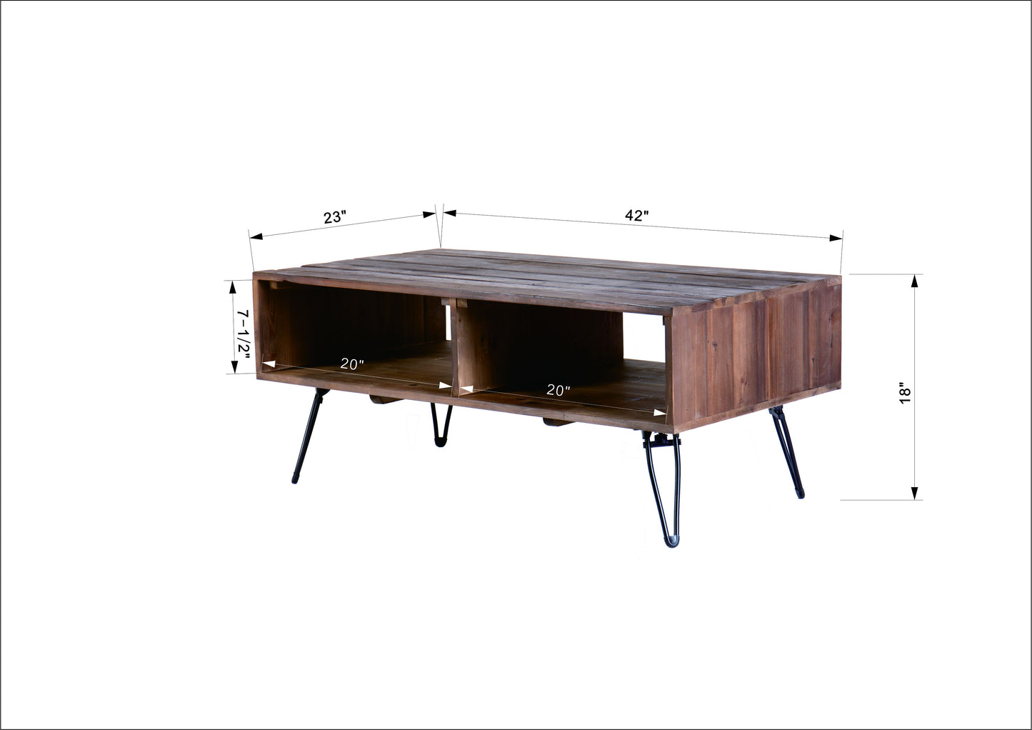 Reclaimed Wood Cocktail Table With Open Storage For Living Room, Metal Legs, Foldable - Black / Natural