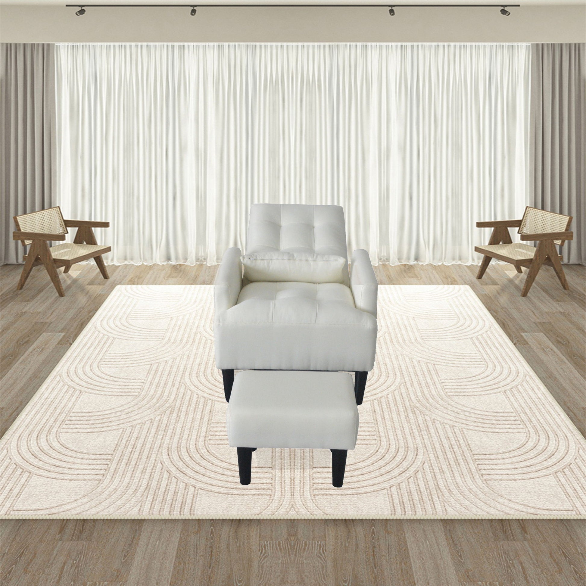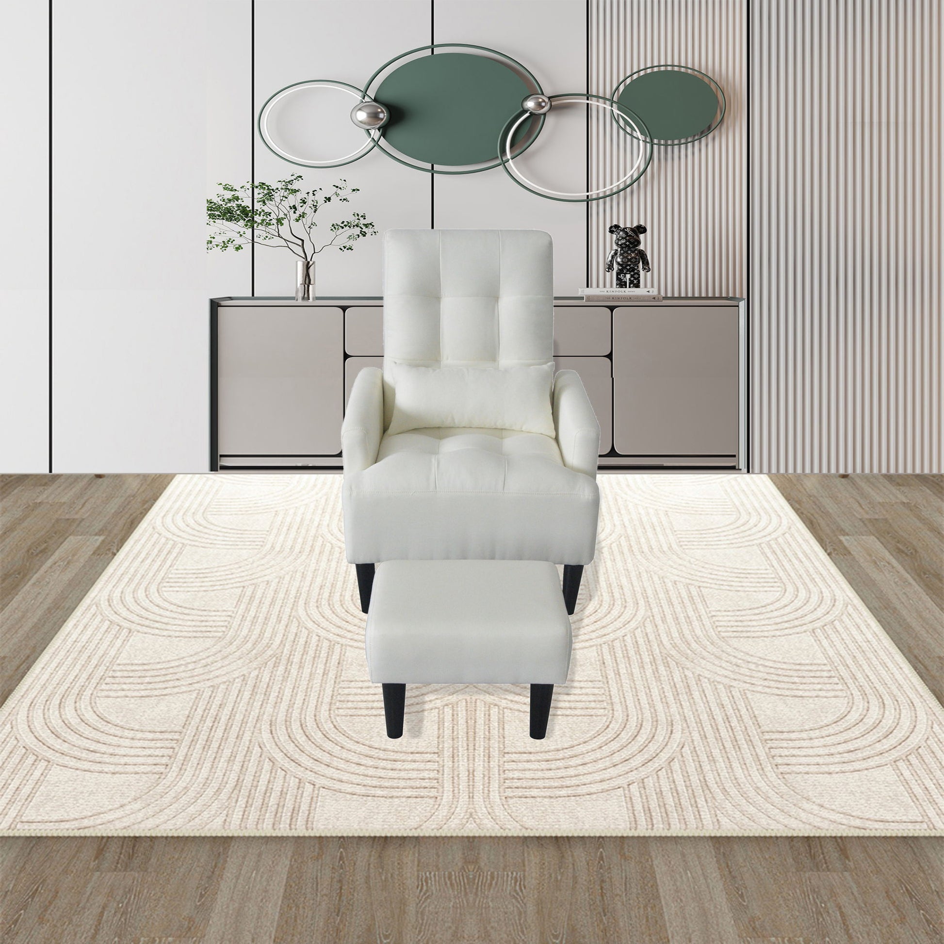 Recliner Soft Cozy Sofa Chair With Ottoman - Cream White