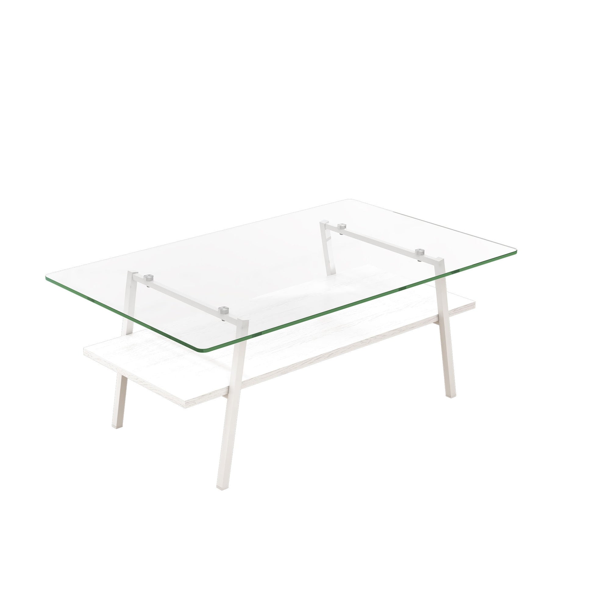 Rectangle Coffee Table, Tempered Glass Tabletop With Metal Legs, Modern Table For Living Room - Transparent / White