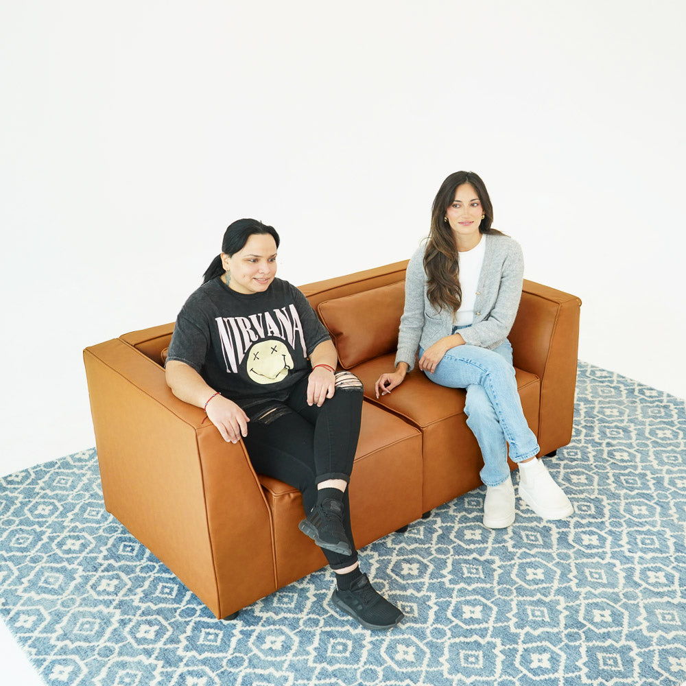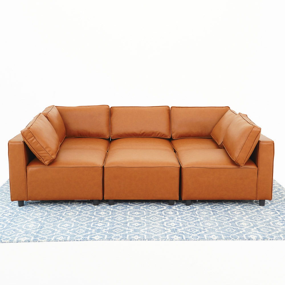 - Dimensions and Capacity: The Reno Cognac Vegan Leather Modular Sofa measures 28.7 inches in height, 91.3 inches in width, and 59.4 inches in depth, comfortably seating up to six people.