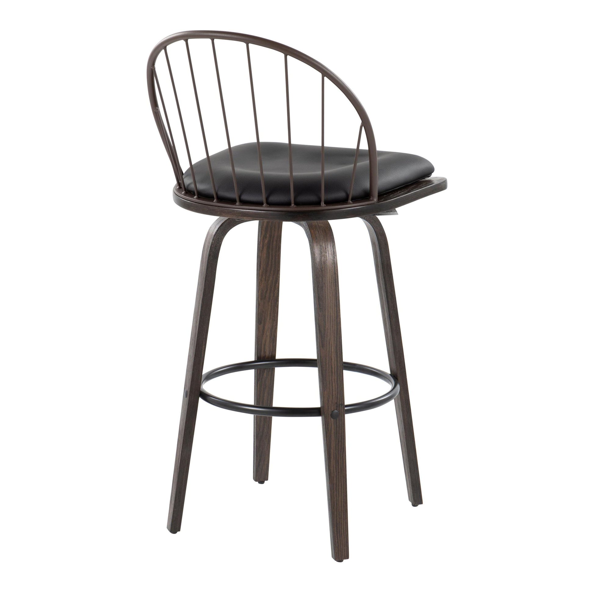 Riley - Industrial / Urban Fixed Height Barstool With Swivel With Round Footrest With Removable Cushion (Set of 2) - Walnut / Brown