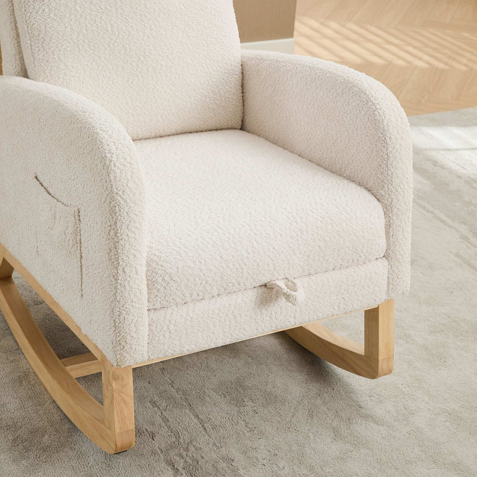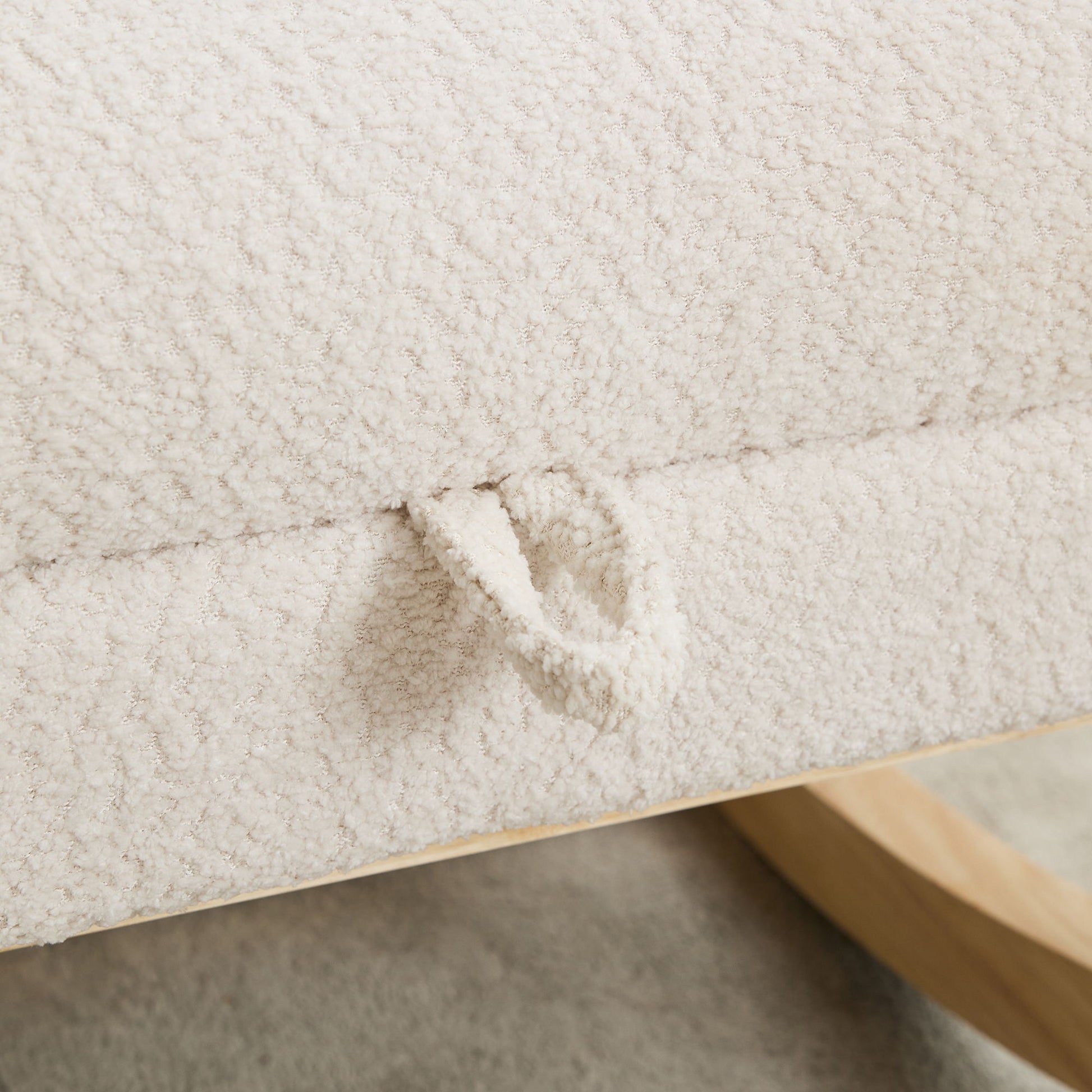 Rocking Chair For Nursery, High Back Glider With Retractable Footrest, Boucle Upholstery, Rubber Wood Legs - Ivory